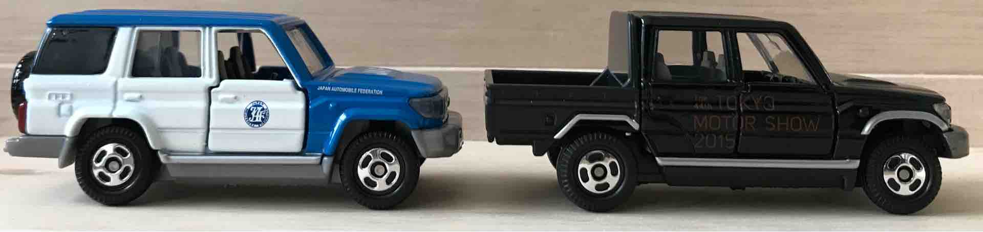 右のトラックモデルと比較。ノーマル仕様が近くになかったので、東京モーターショー2015仕様と比較になります。ただ、東京モーターショー2015の印刷がついて、ボディーカラーがブラックなだけなので、比較的ノーマルに近いかと。