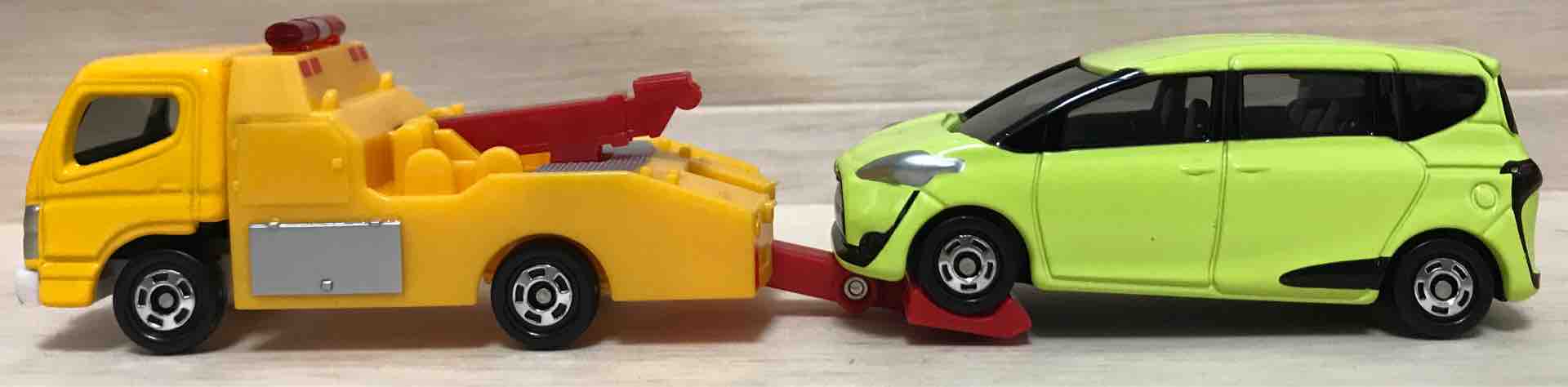 レッカーして遊ぶとこんな感じ。シエンタだとホイールがぴったりはまります。