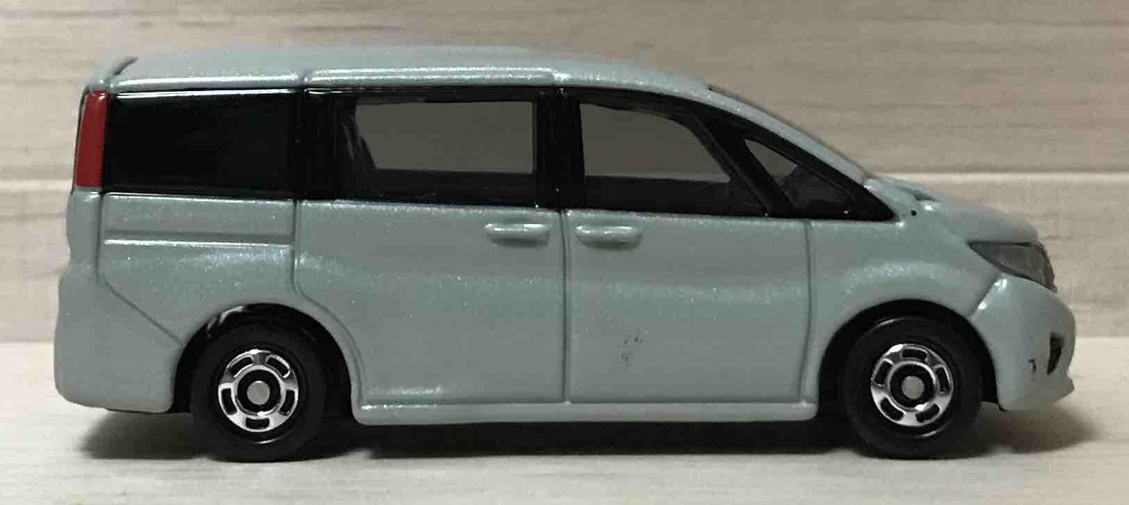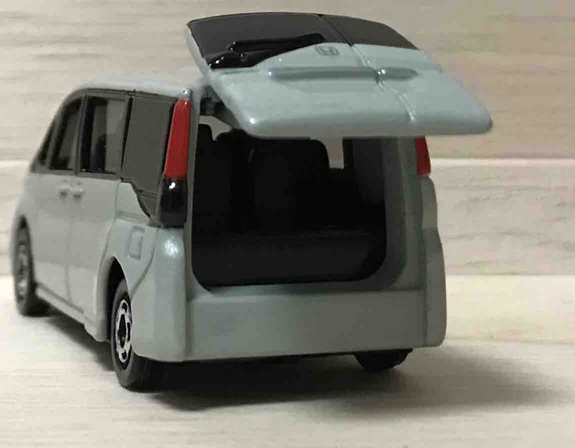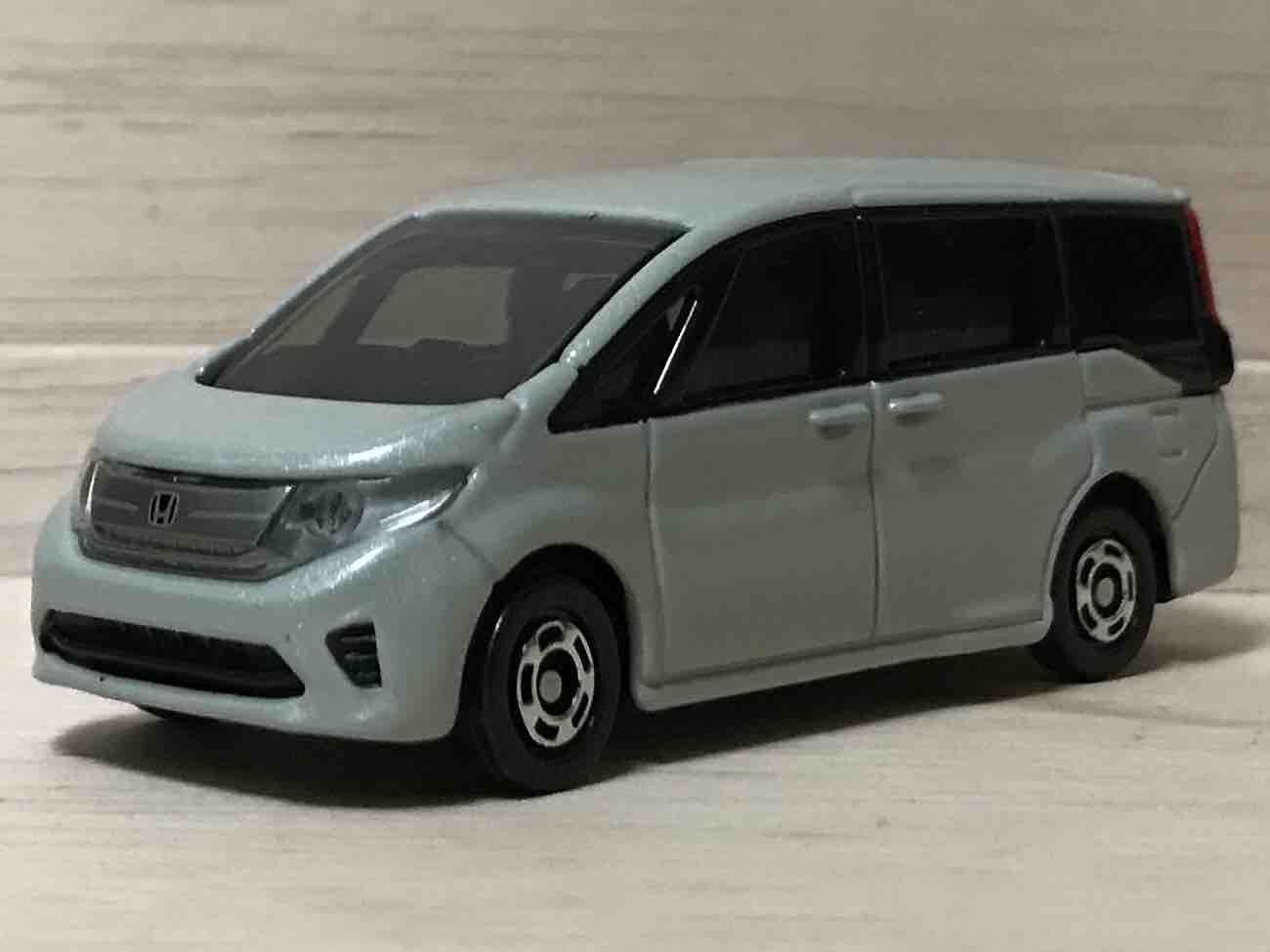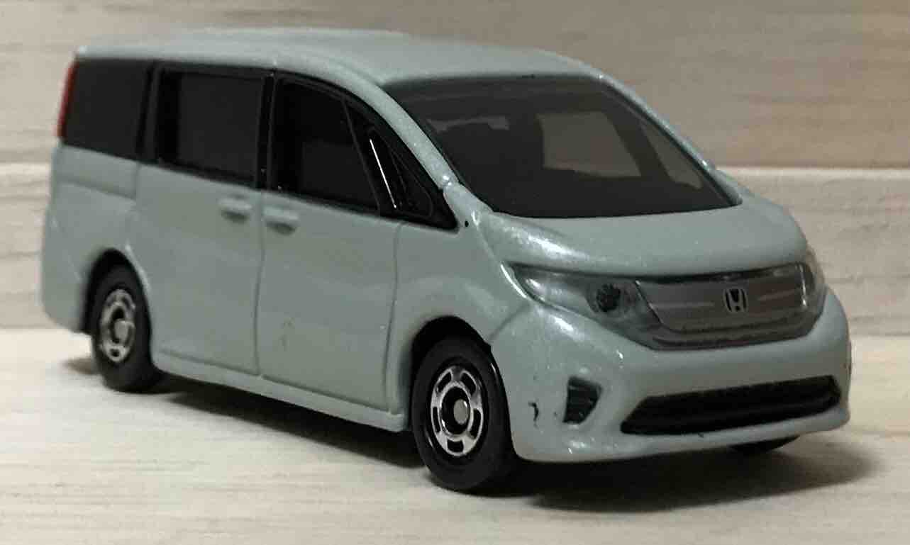 今まではカクカクしていたステップワゴンですが、丸くなりました。これに対して不満が多いようです。別にホンダらしさがあって悪くはないと思います。このトミカは、フロントグリルとヘッドライトがクリアパーツ一体化しています。のっぺり感がなく良いです。