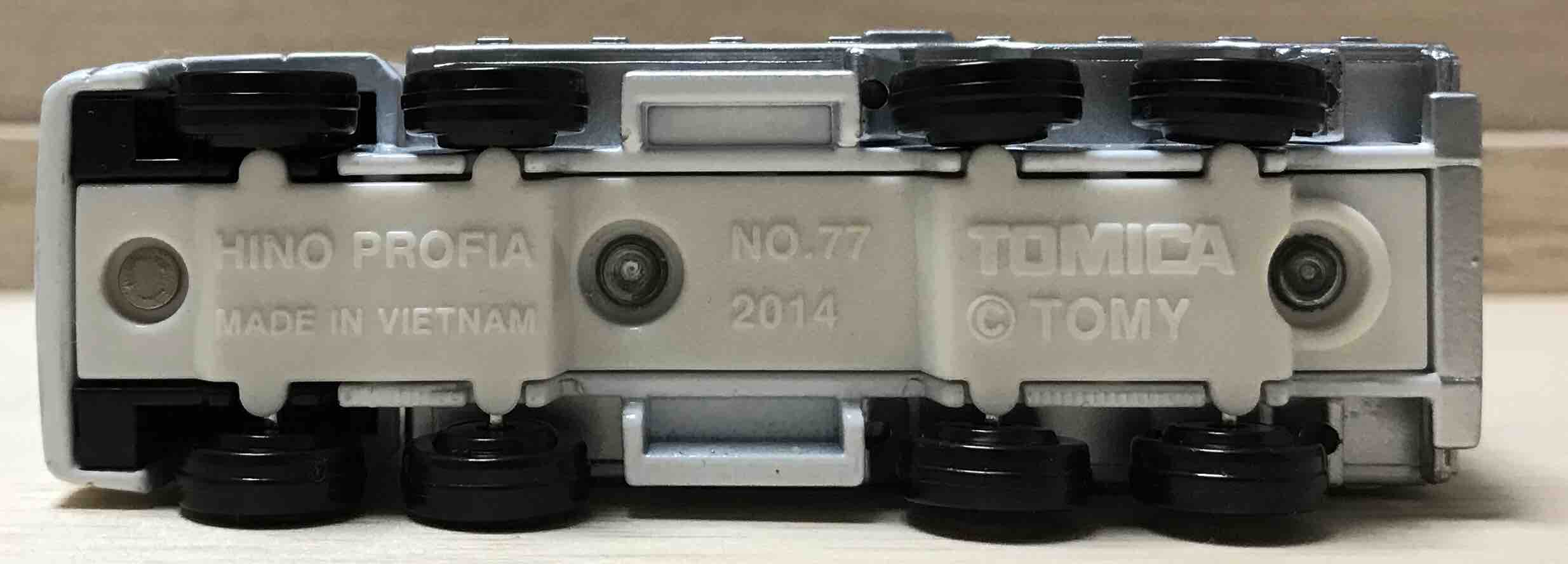 2015年3月発売のこのトミカ、衝撃を受けた人も多いのではないでしょうか。日野プロフィアのトミカは、2005年の1月に発売されましたが、トレーラーでした。10年を超えた2015年3月、パネルトラックが登場したのです。もちろん金型は別。