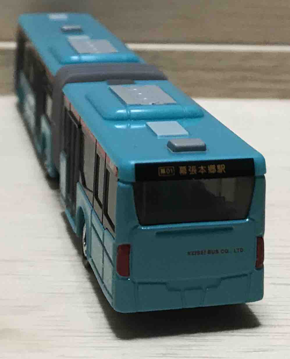 行き先の表示もシールで再現されていて、細かい。京成バスの社名表記は控えめで、窓上のラインとボディー真ん中に小さく記載。シンプルでいいですね。