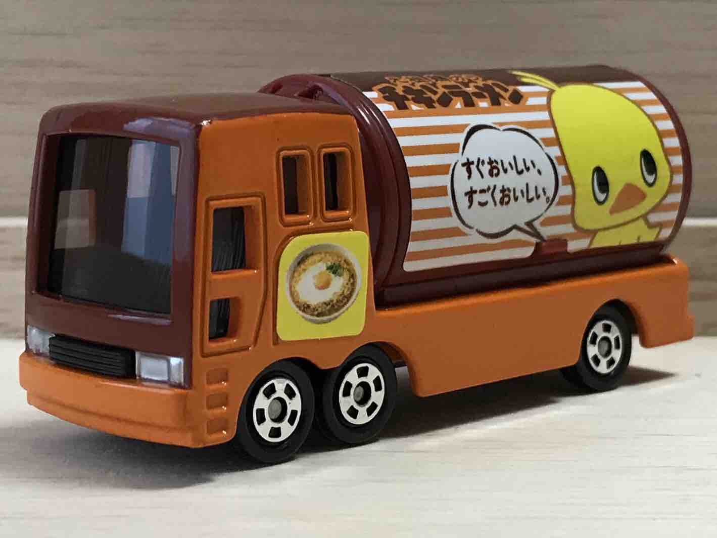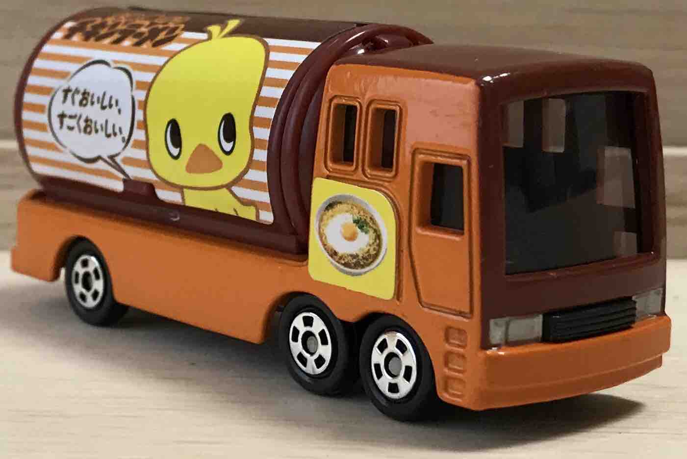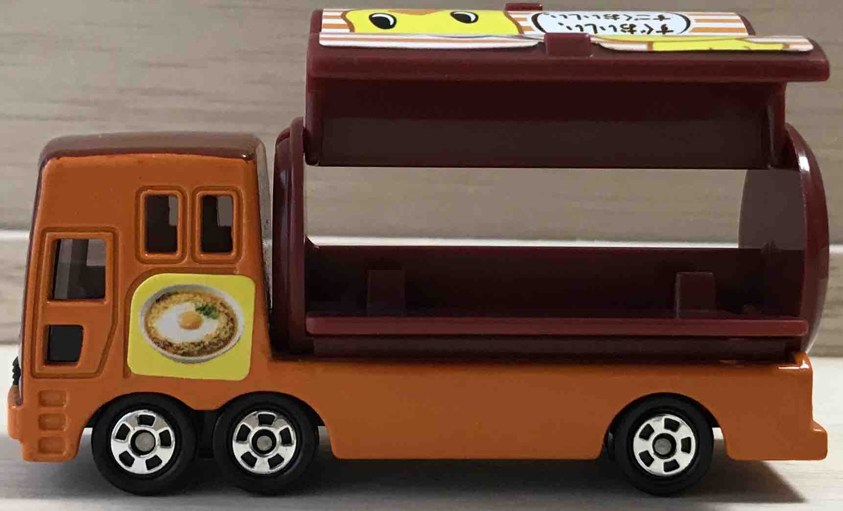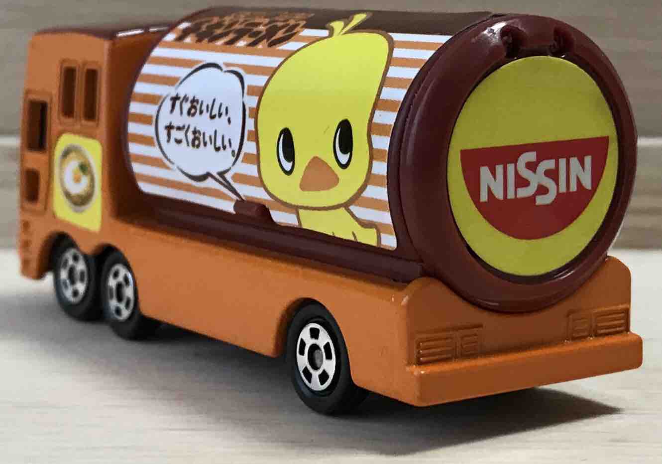 ベースは三菱ふそうのトラック。オレンジ色と栗色のボディーカラーがチキンラーメンを連想させる… うまいですね。