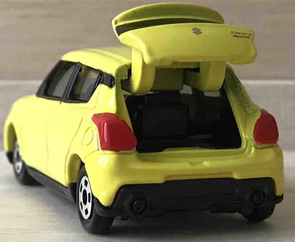 スイフトは第2世代以降、キープコンセプト。このどこからみてもスイフトとわかるデザイン、黄色の似合いすぎ感。トミカなのに、スズキの実車を売りたい気持ちが伝わってきます。トミカでもスズキの気持ちを伝えてくるタカラトミー社もすごい。
