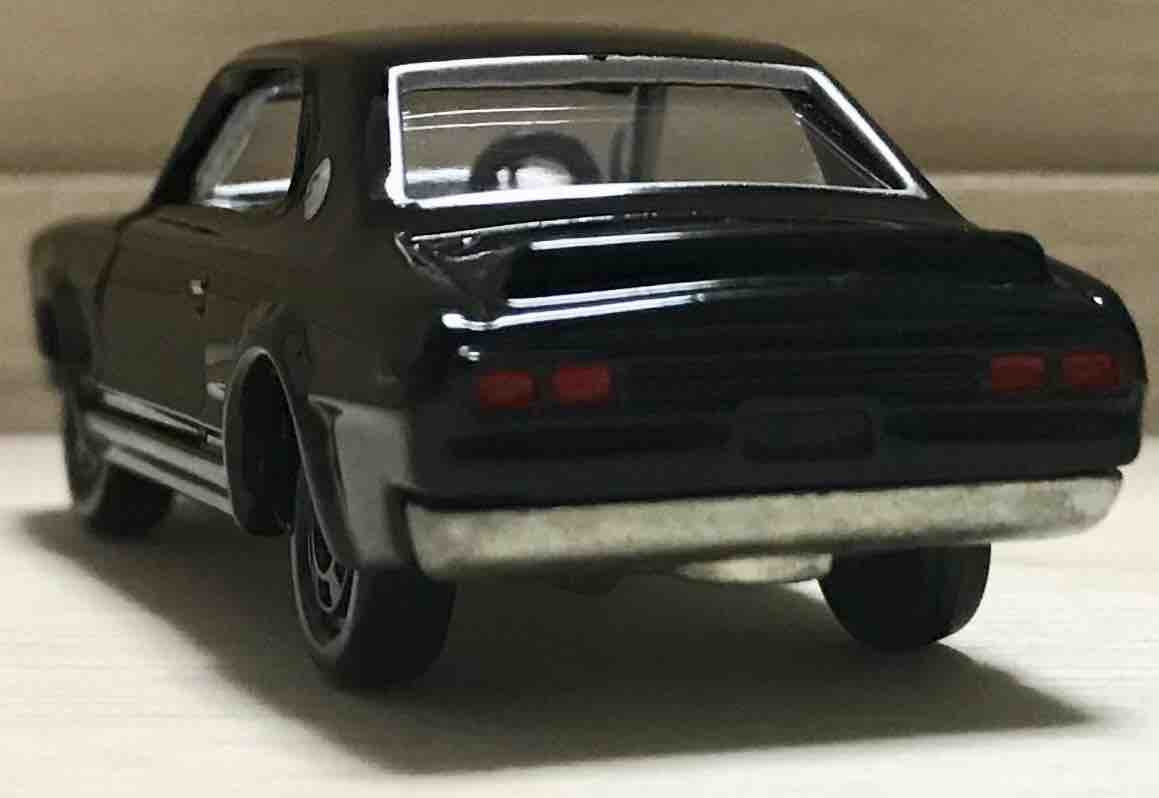 テールランプはもちろん塗装済み。ブラック×シルバーがこんなにも似合うのに、実車のハコスカにブラックがなかったのは、何か理由でもあるのでしょうか。