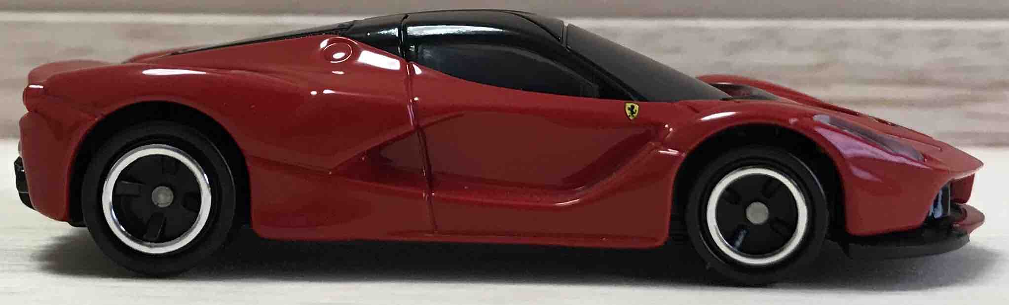 ボンネットに輝く、宝石のようなイエローのフェラーリエンブレム。ボディーも宝石のよう。フェラーリといえば、赤。赤いフェラーリもついにトミカになりました。