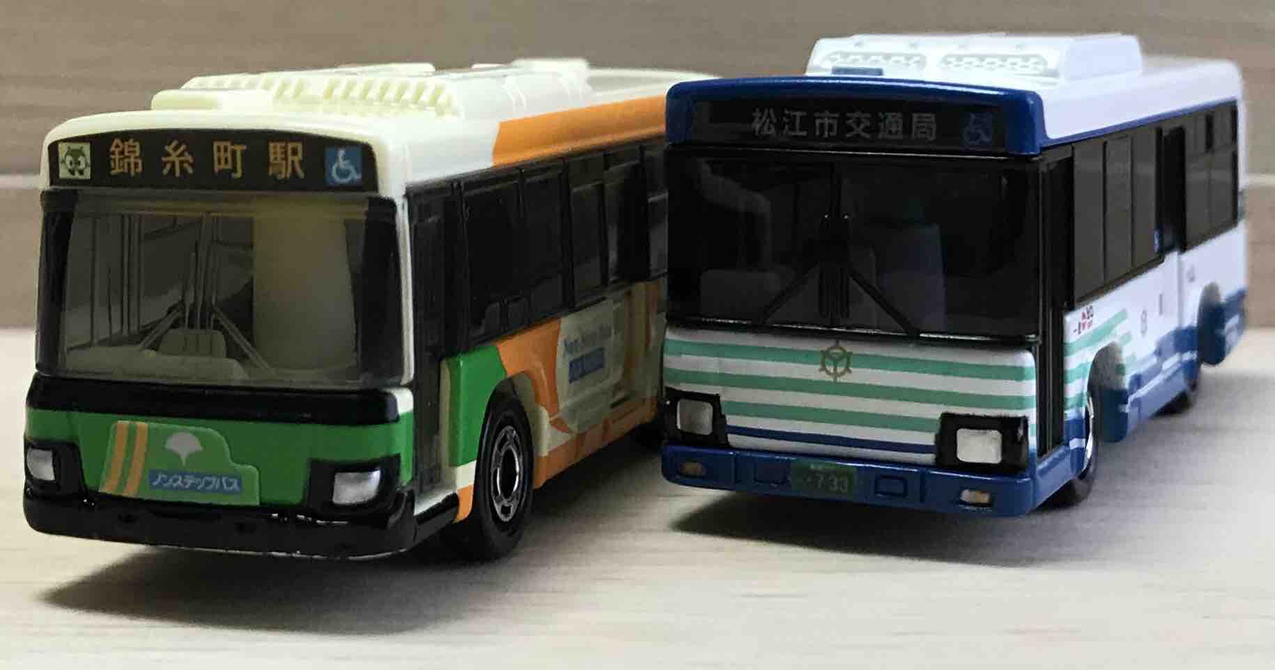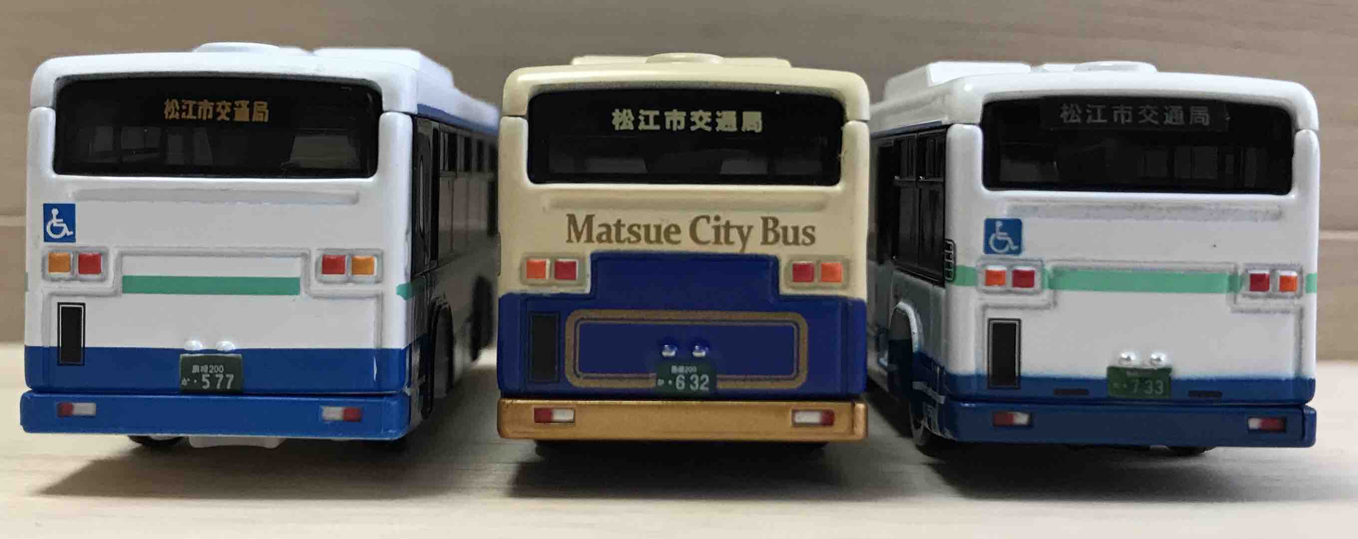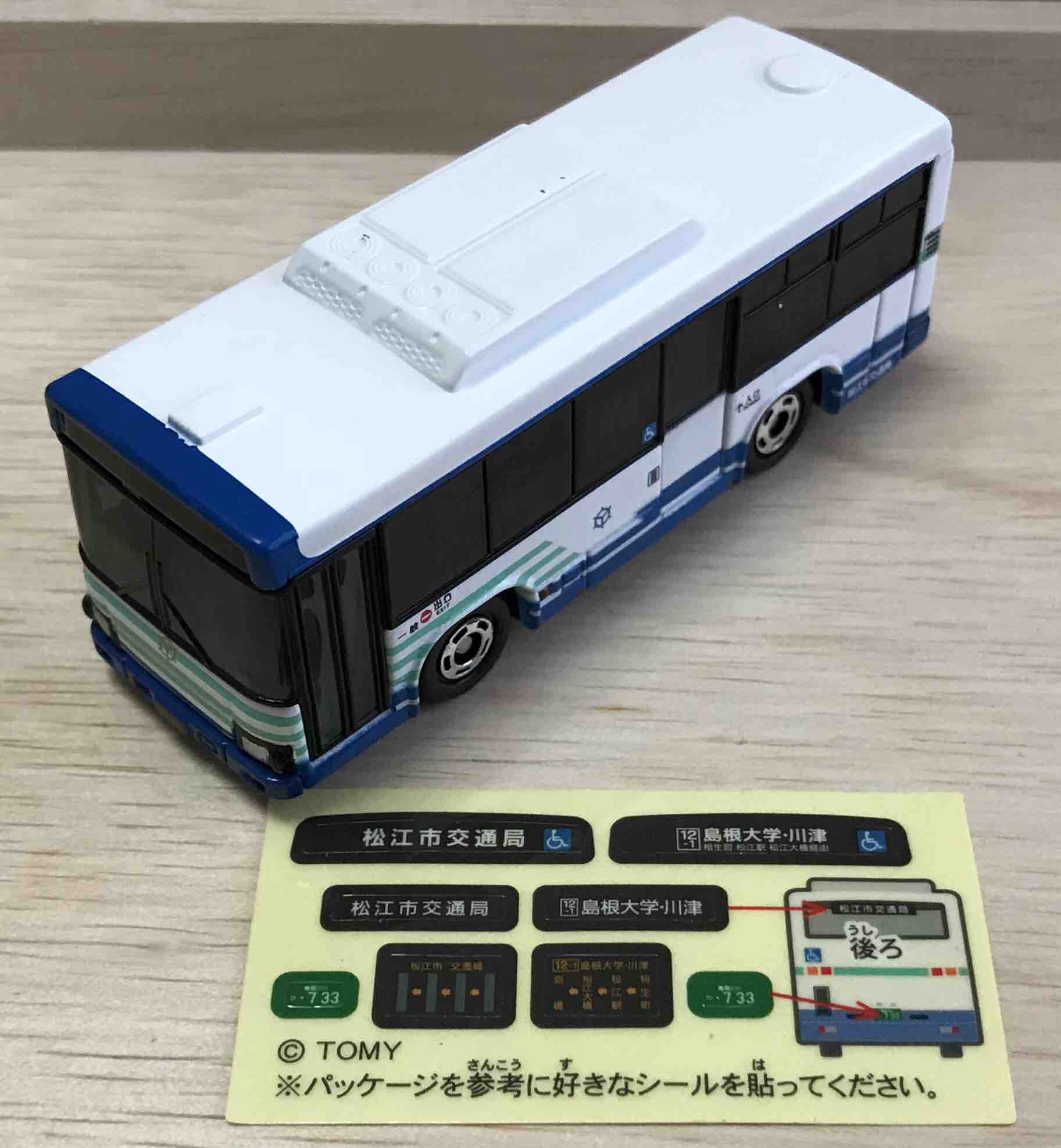 松江市交通局特注トミカ 第1弾〜第3弾のパッケージ。今回のパッケージは、唯一のツヤあり仕様です。