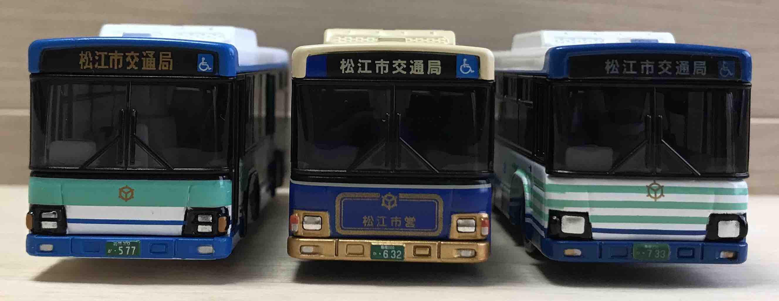 金型改良の予測からまた予測すると、タカラトミー社的には、いすゞエルガ/日野ブルーリボンⅡ の金型で、松江市交通局がブルーリボンをベースとしてしまったのでこういった現象が発生したのかもしれません。