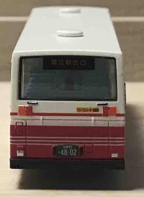リアもシンプルさがあります。ドライブレコーダー搭載車のステッカー以外の装備がありません。乗降表示器がないのに驚きました。導入当時の仕様とも現在の仕様(発売年の2014年)とも書かれていないのでよくわかりませんが、実車にもないのでしょう。