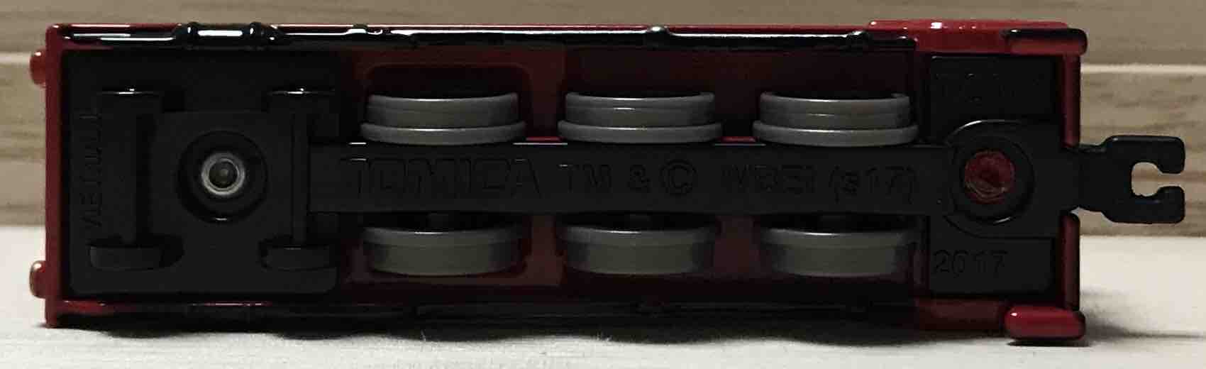 下についている連結器で他のトミカの鉄道車両と連結することができます。