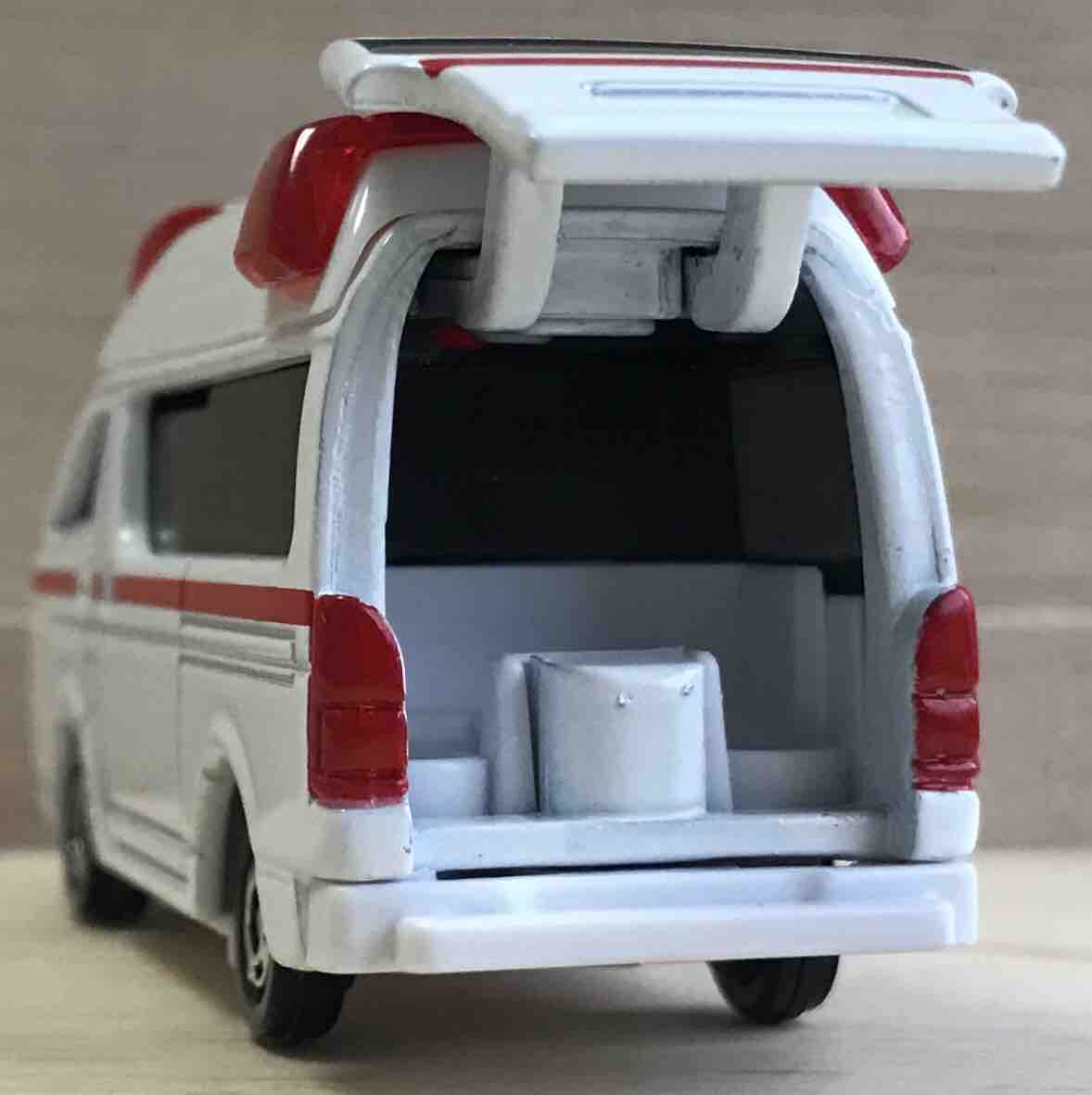 ボディーの下にボタン電池を装着するパターンになるので、車高は少し高め。実車がこんなに車高が高かったら、担架を出し入れするのが大変そうです。