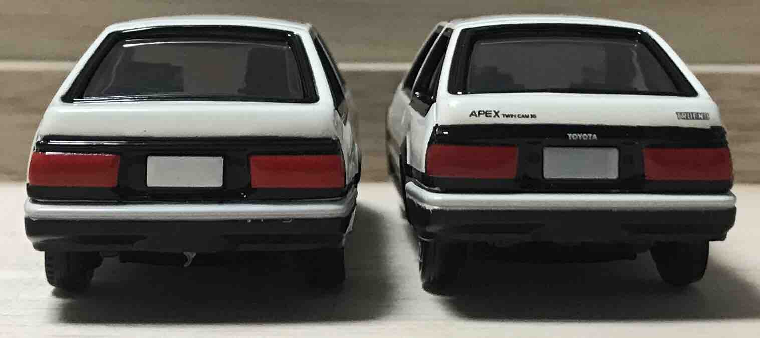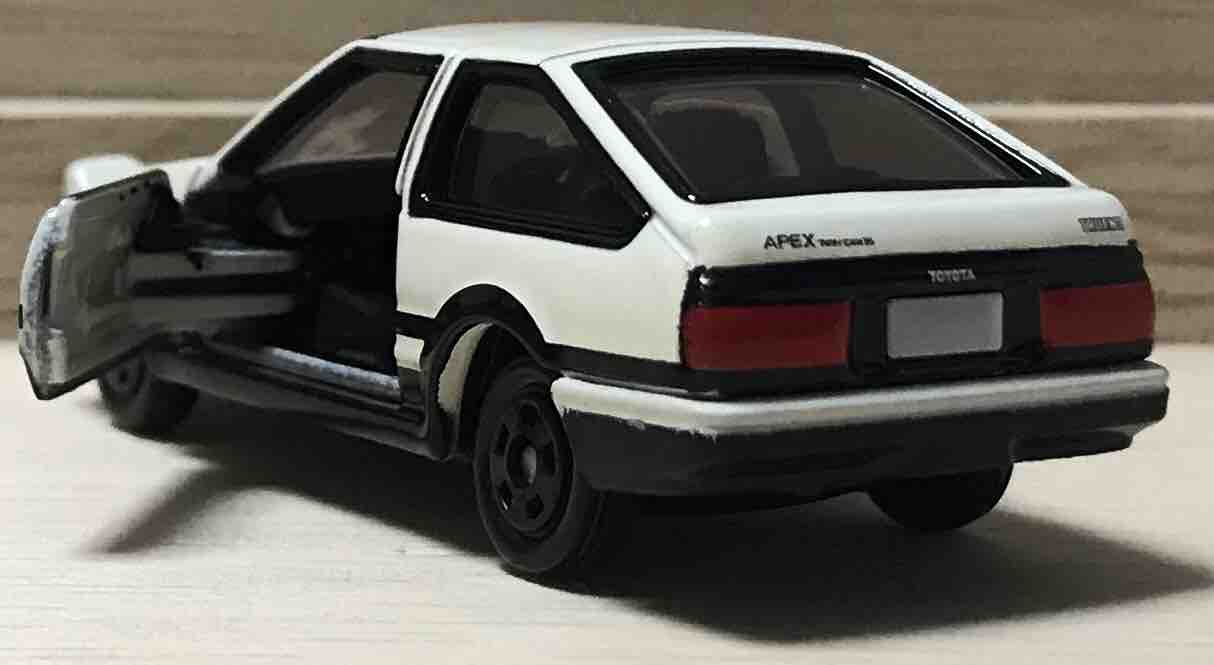 通常仕様の頭文字DのAE86は、タイヤも専用のものですが、今回はトミカの定番のタイヤを履いています。頭文字D仕様で、この金型のAE86では初のことです。