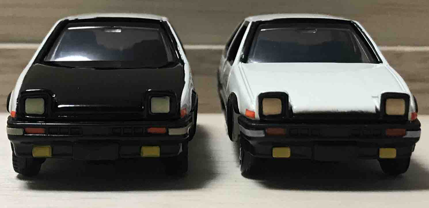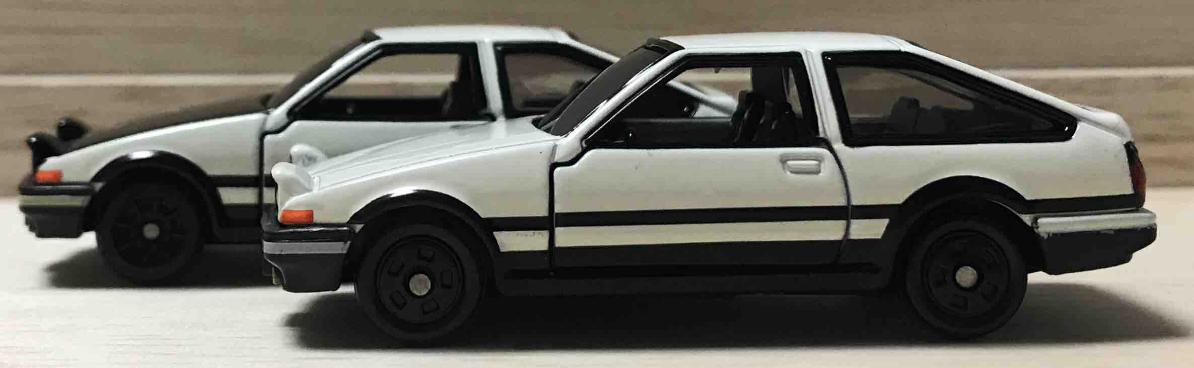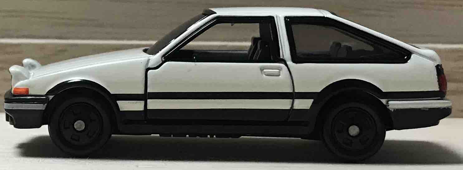 ボンネットが白のAE86がモデル。ドリームトミカシリーズにラインナップされているのはボンネットが黒のモデル。2014年7月に初回生産限定モデルとして、白モデルも発売されたことがあり、こちらは初回生産限定だったこともあってか、プレミアモデルになっています。白いボンネットのAE86がまたこうしてドリームトミカで発売されたので、そのときに買えなかった、買い損ねてしまったトミカファン、86ファン、頭文字Dファンは歓喜に沸いていることでしょう。