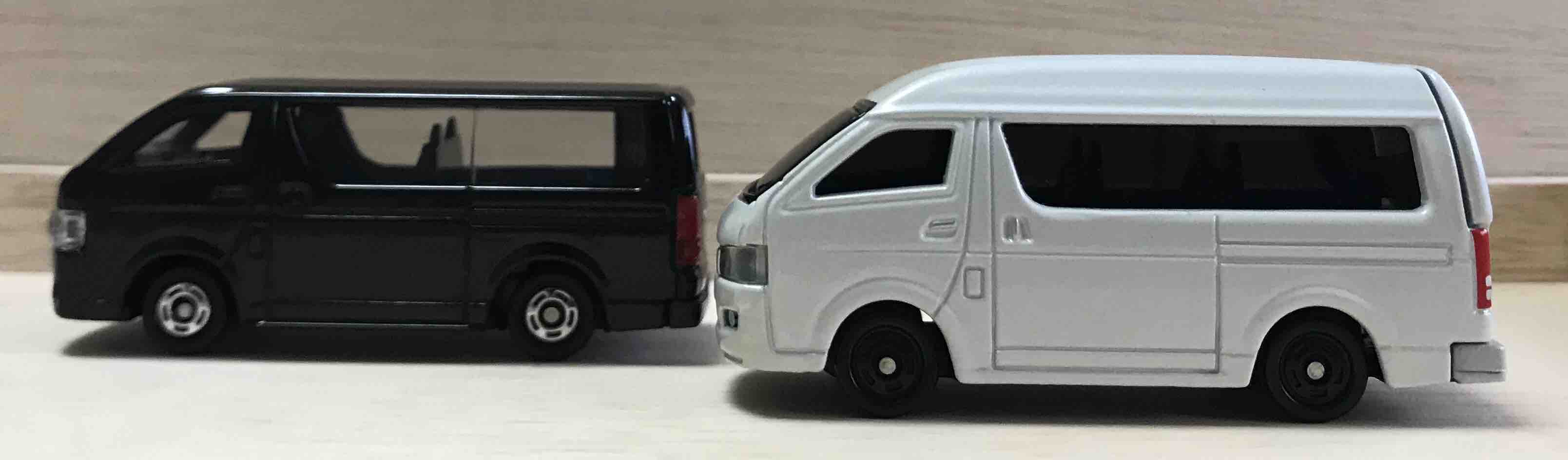 今月発売のモデルはハイルーフではないので、背が小さく見えますが、高さ以外の横幅、長さは同じ大きさです。