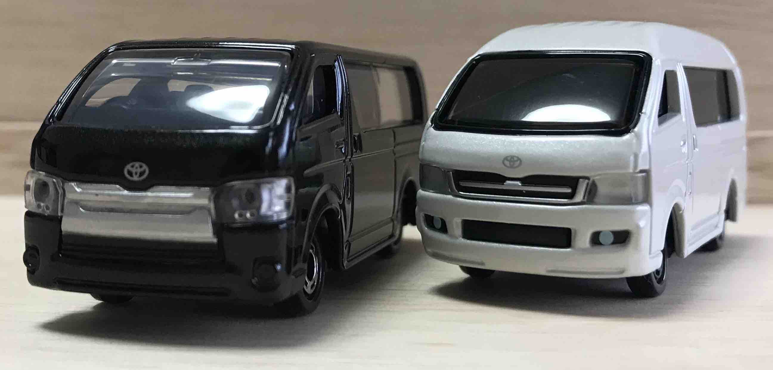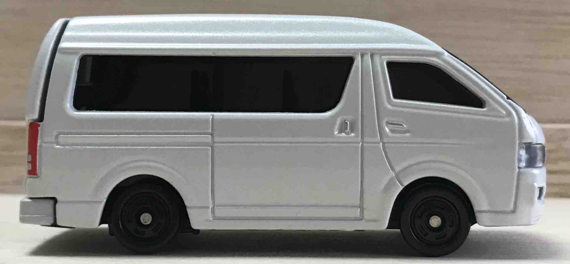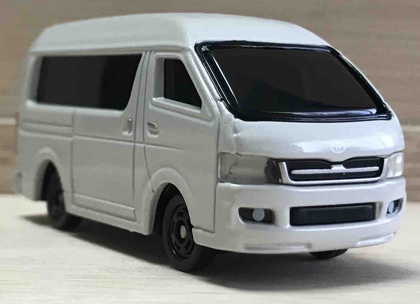 ノーマル?カスタムモデル?窓が黒く、スモークが再現されているようなので、少しカスタムされたモデルのハイエース。トミカでカスタムされたこの型のハイエースが発売されるのは初。カスタムされたモデルがトミカになること自体、なかなかレアです。