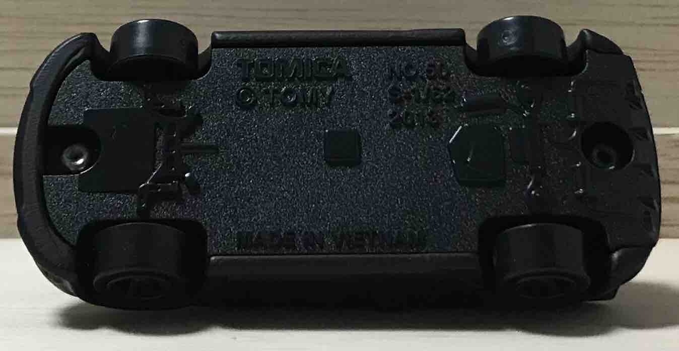 実車はもう少しツヤのある色ですが、トミカだとツヤなんて一切なしの完全マット塗装。ホイールも黒く、ここまで暗いトミカはトミカ史上初と言えるでしょう。