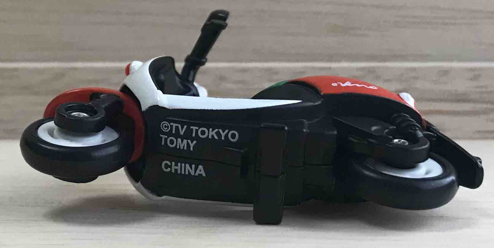 番組とのコラボレーションで、そっちに重点を置き、バイク本体の完成度が心配されましたが、バイク本体の完成度が非常に高いです。これがドリームトミカだけの販売となると、非常にもったいないくらい。