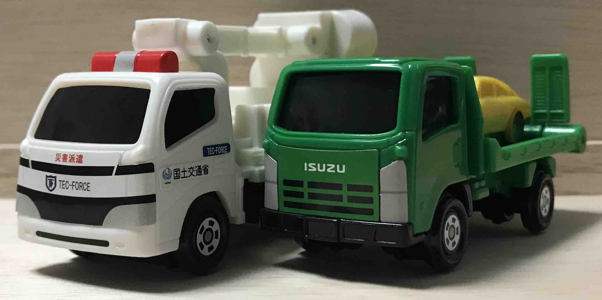 最後に国土交通省 照明車と並べて。同じサイズのトラックで、スケール感もほぼ同じなので、 実車に近いと思われます。
