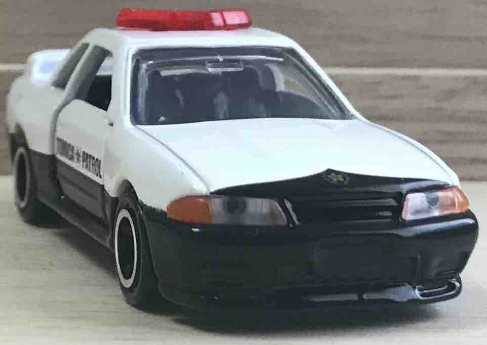 日産GT-R(BNR32)のパトロールカー。スカイラインの文字を商品名に含まないという少し謎めいています。日産GT-Rシリーズが50周年なので、スカイラインという名前よりGT-Rを強調したいのでしょうね。