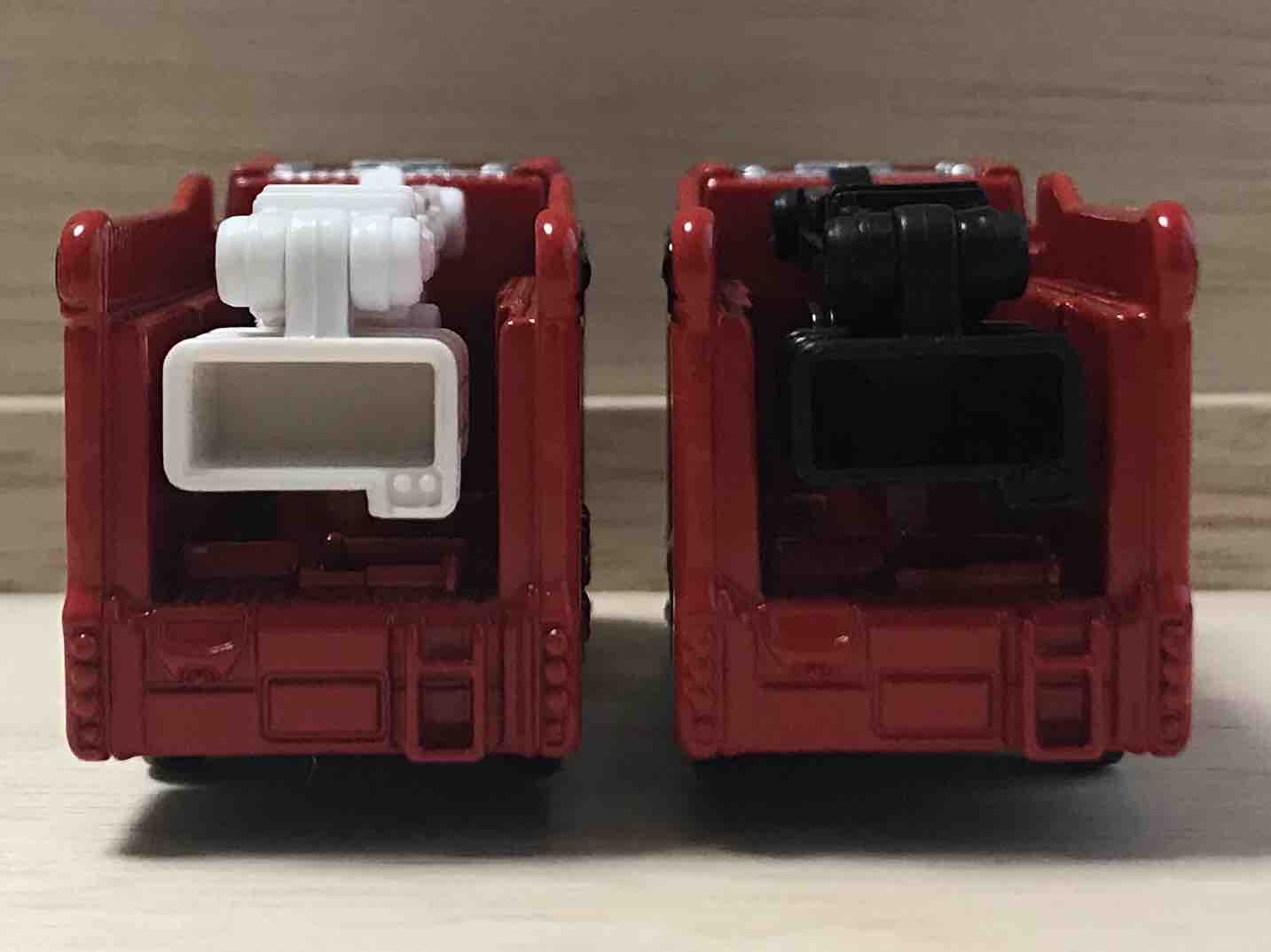 ナンバープレートの右側のハシゴの大きさがセット仕様のほうが少し大きめで、長さも長め。それにセット仕様のテールランプの凹凸もほぼない感じです。