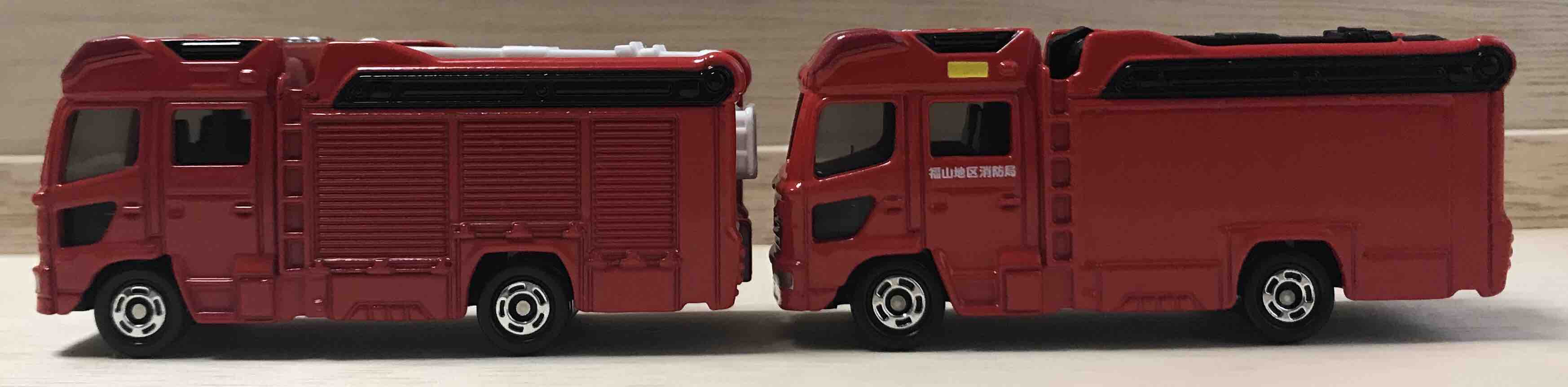 セット内容全車種と。東京消防庁・岡崎市消防本部・福山地区消防局と、東京都・愛知県・広島県の緊急車両がセット内容に含まれています。