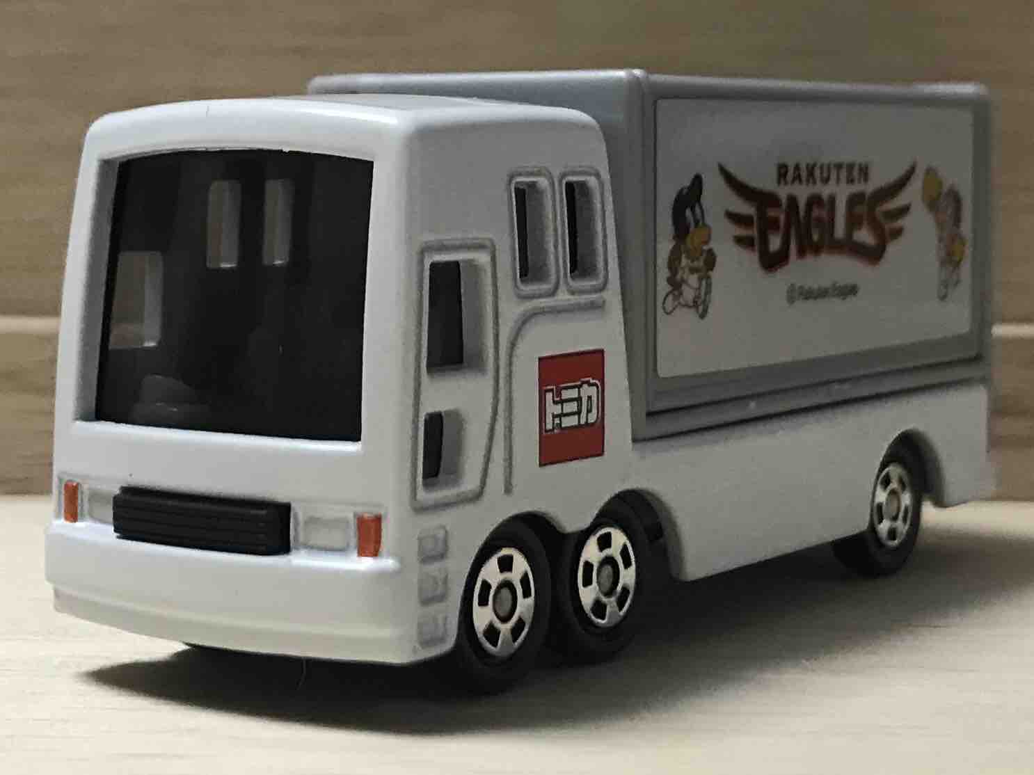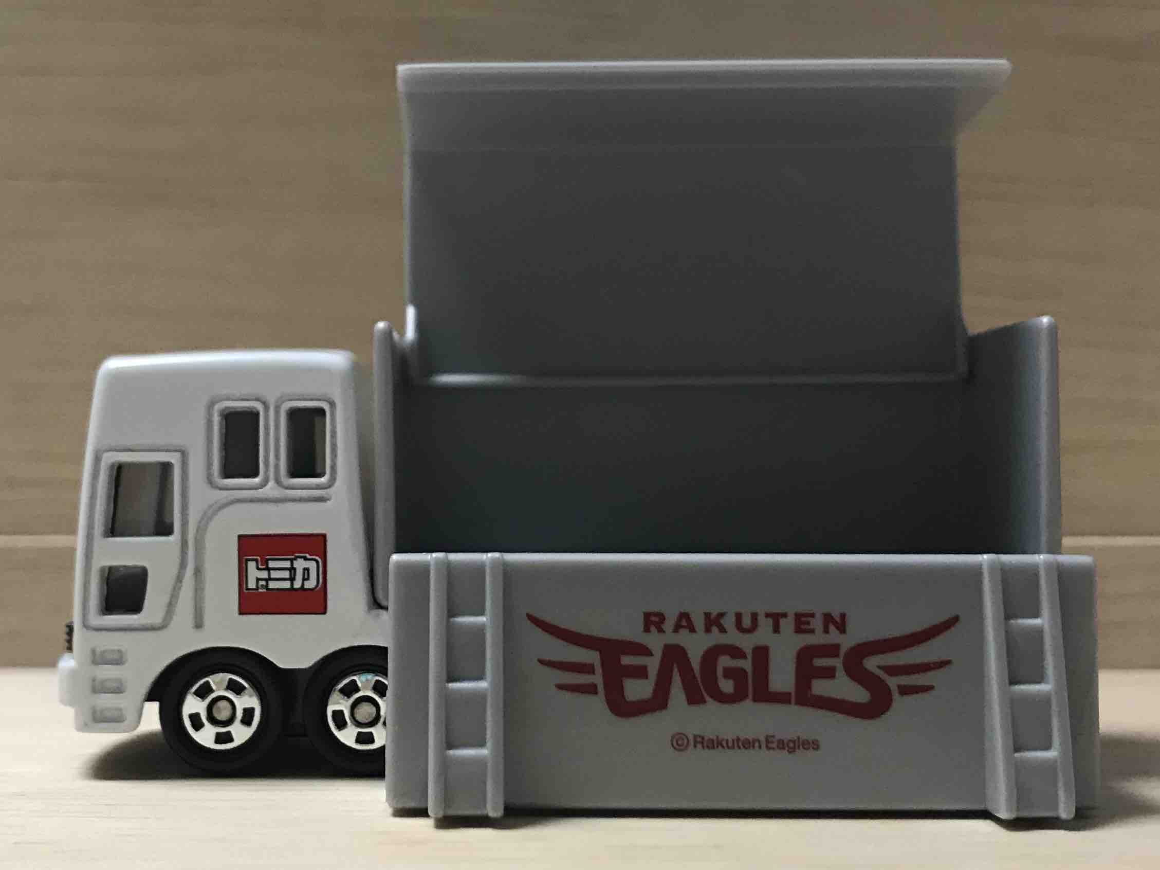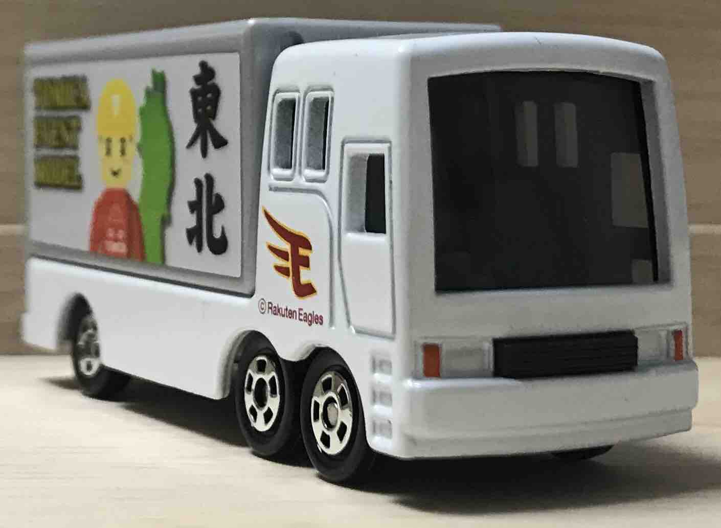 斜めから。側面には楽天イーグルスのロゴがあるので、側面からみると、楽天イーグルスのトラックということが伝わりますね。
