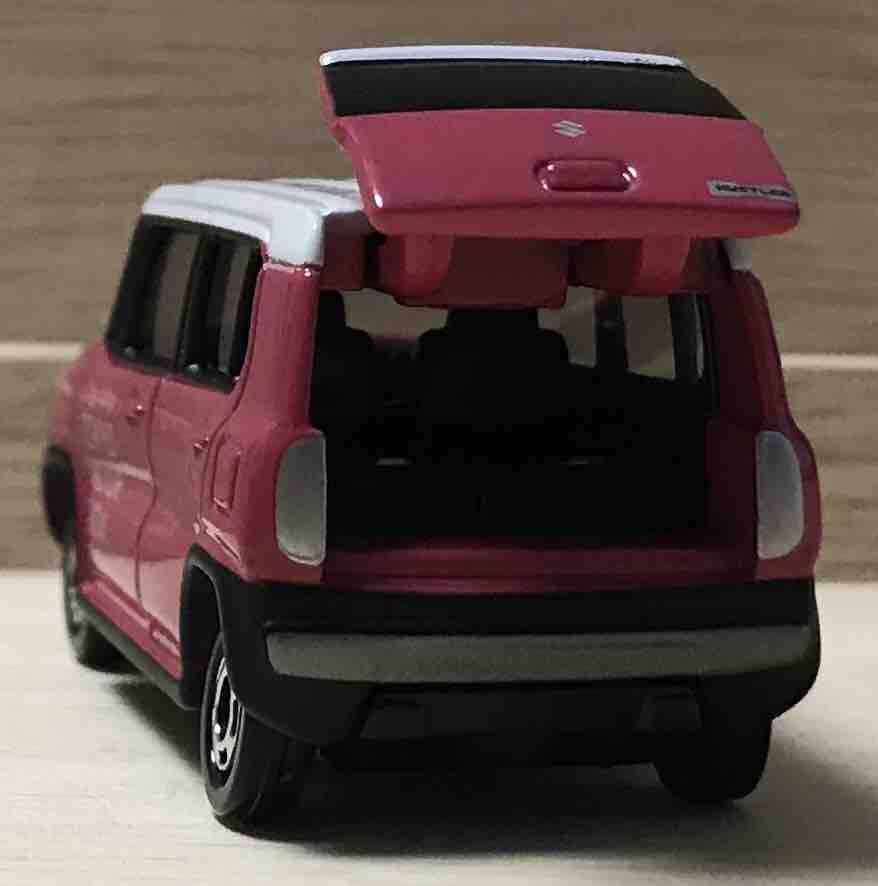 ボディーカラーは「チアフルピンクメタリック ホワイト2トーンルーフ」。実車でも人気のカラーリングです。