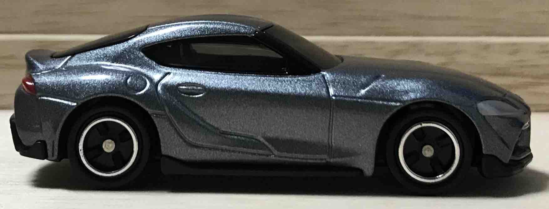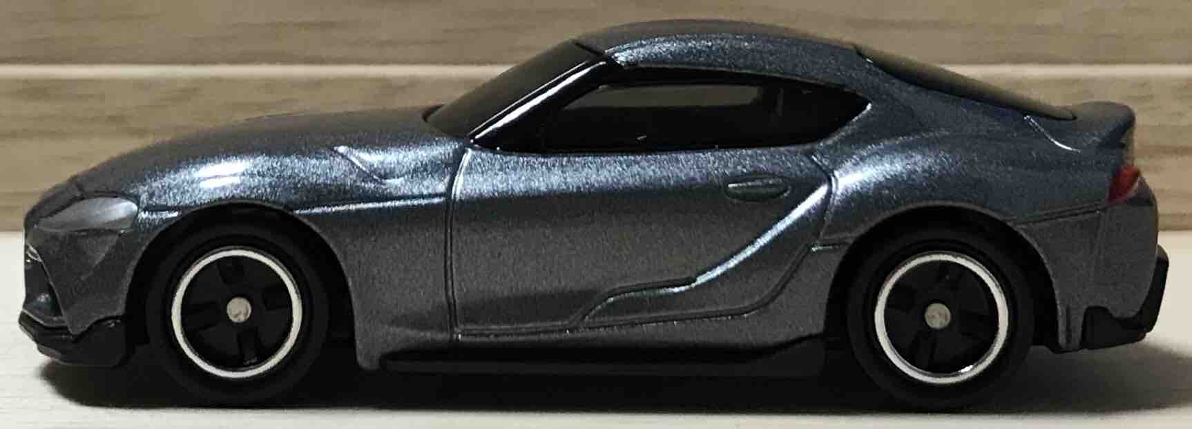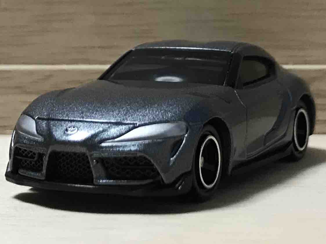 新型スープラのイメージカラー「マットストームグレーメタリック」。特殊な塗装のため、年間24台しか販売できないそう。トミカとしても初回生産限定なので、24台ではありませんが、レギュラートミカのスープラに比べたら台数は少ないです。