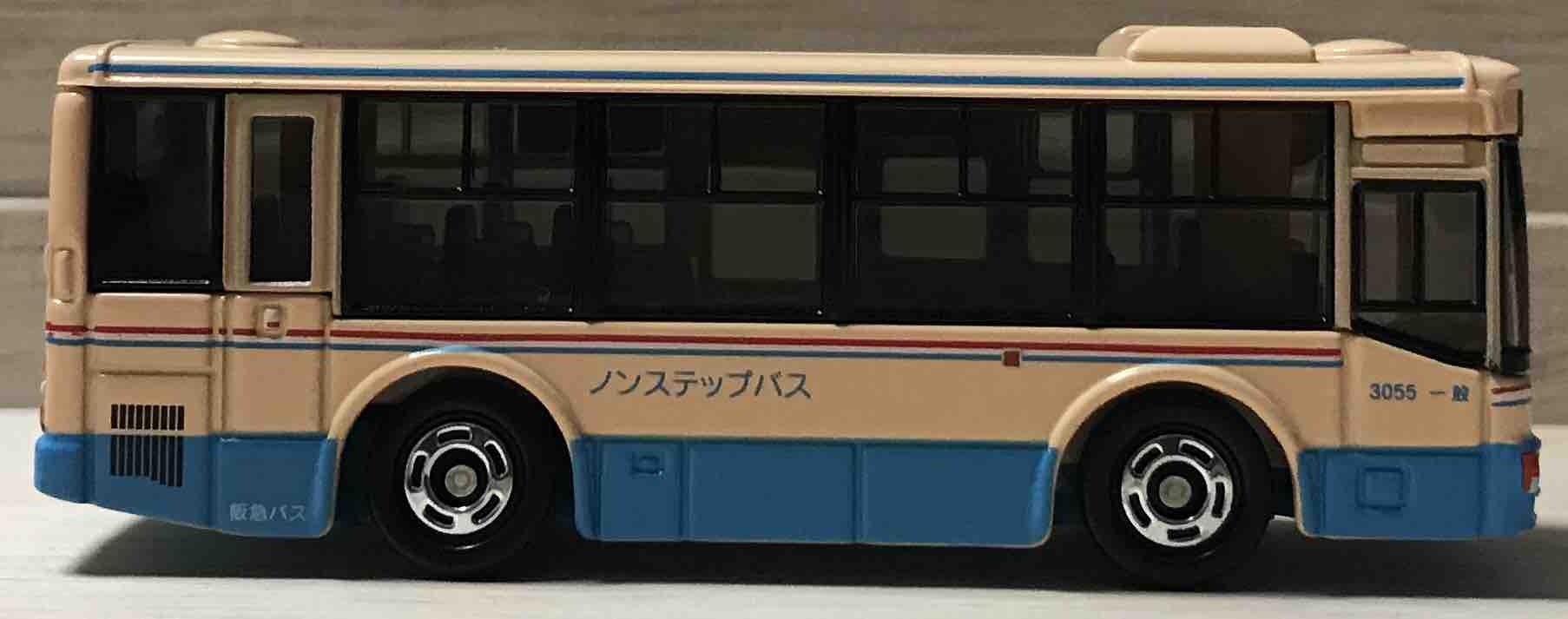 阪急バス豊中営業所に所属する「3055号車」がモデルです。ナンバーは実車と同じもの。「大阪 200 か 37-61」となっています。