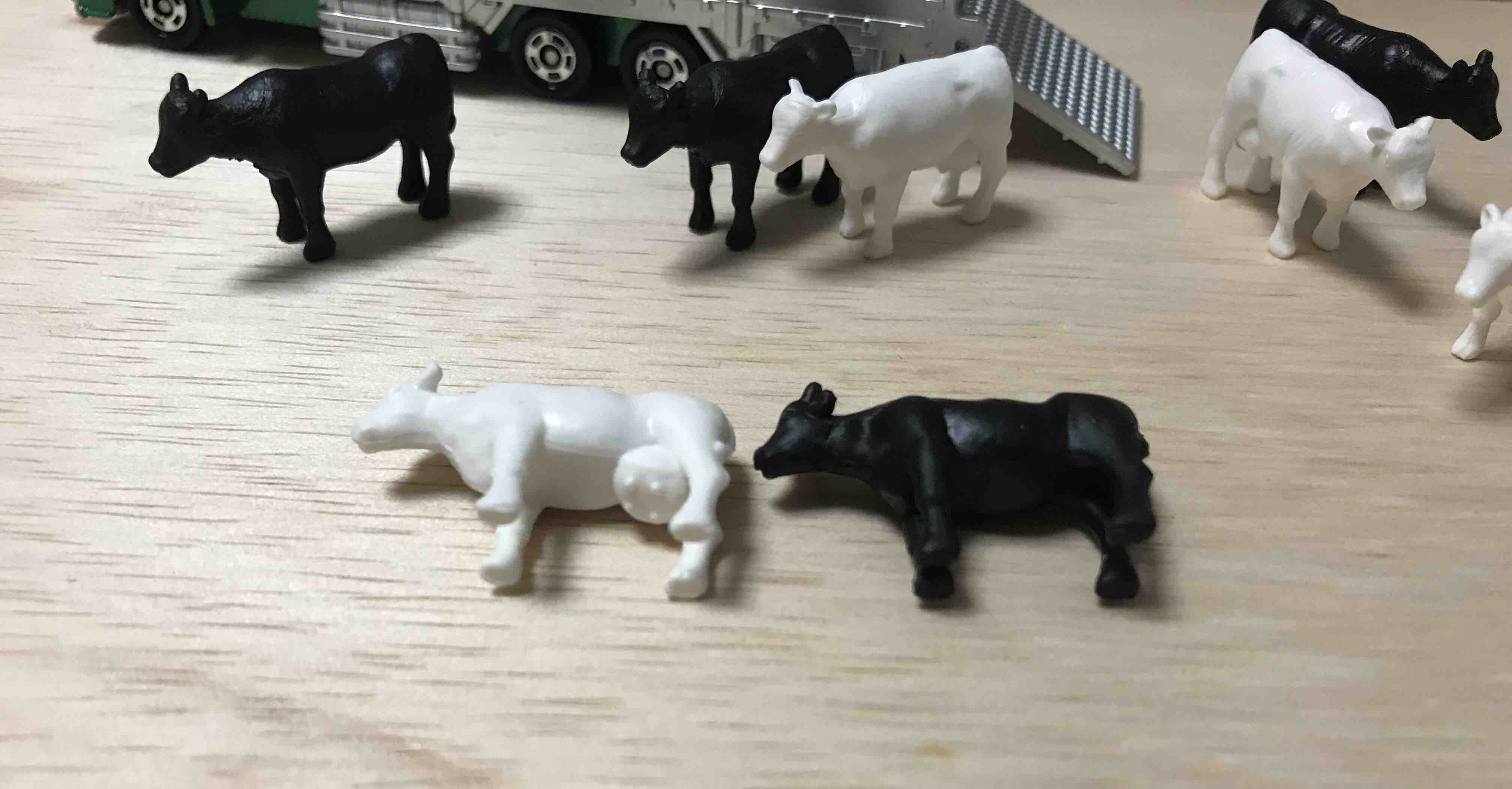 家畜を降ろしてみました。白と黒の牛さん。