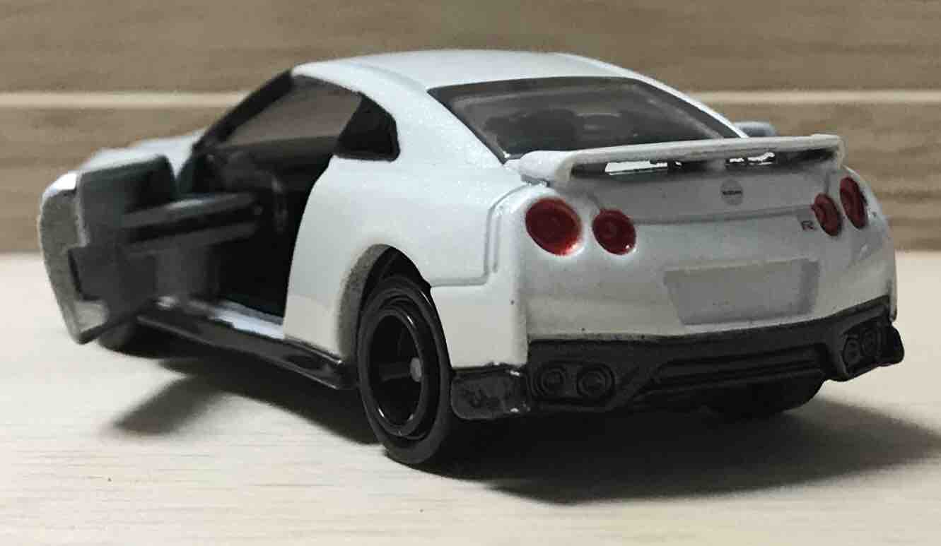 リアは「ブリリアントホワイトパール」を一番楽しめるところ。GT-Rファンも、トミカファンも、世界の自動車好きもが楽しめるようになっているのが、このシリーズの醍醐味です。