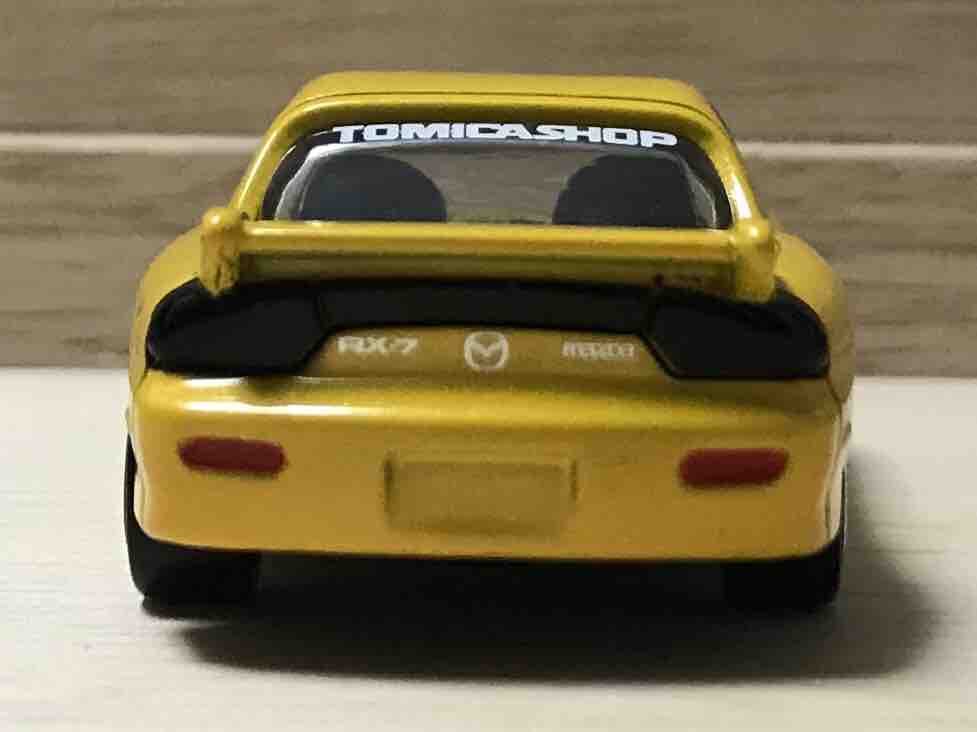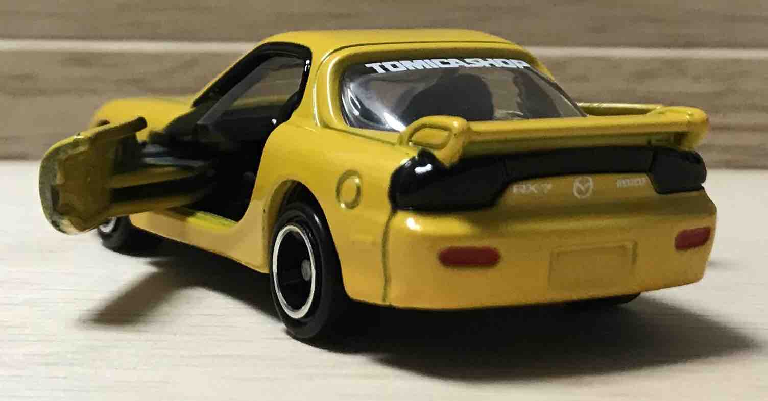 後ろの窓に「TOMICA SHOP」のロゴ文字。これがないとトミカショップオリジナルトミカではありません。エンブレムはマツダ、RX-7とフル装備です。