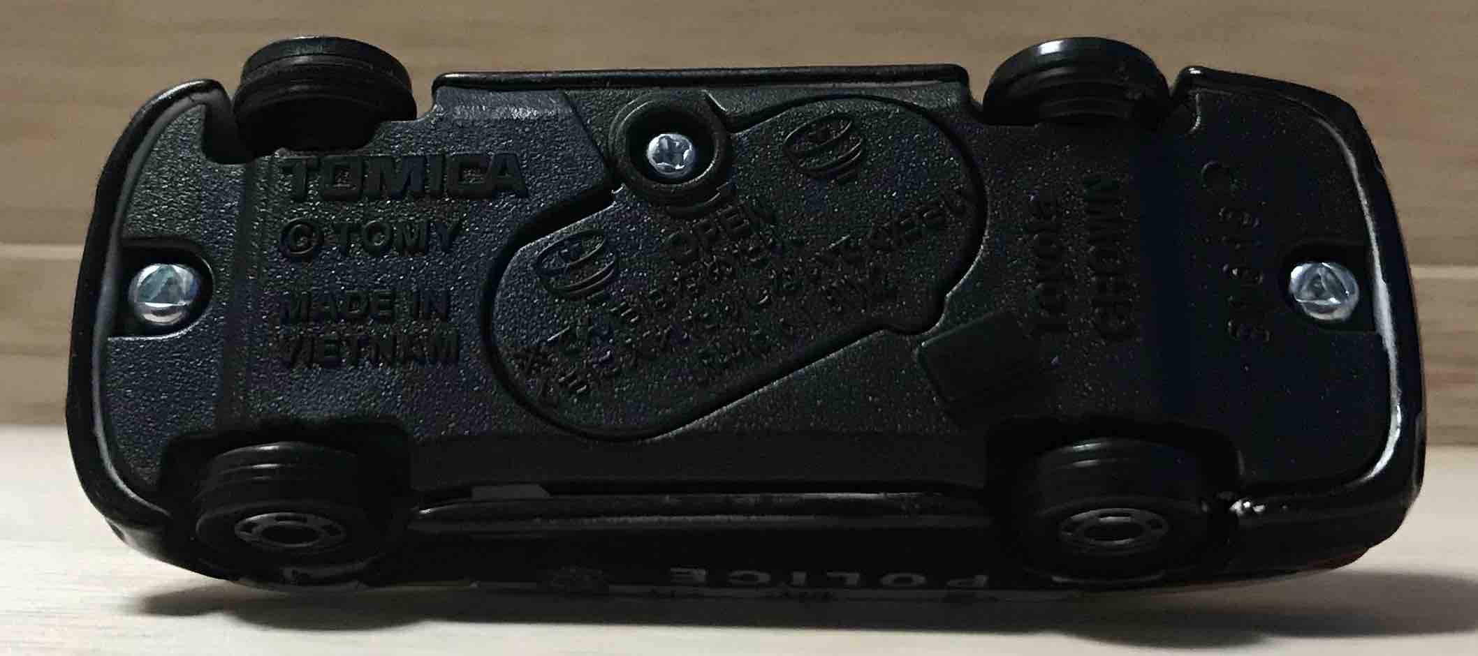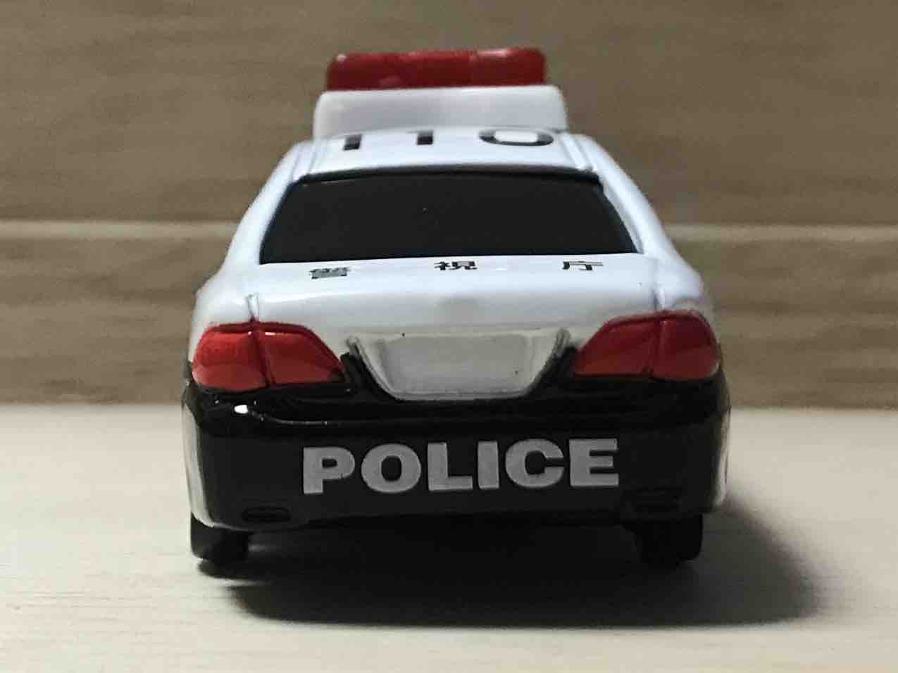 金型自体はNo.110のトヨタクラウンパトロールカーのものと同じ。それに架空のエンジン音とサイレンをつけただけのもの… パトランプが光れば楽しいのに!と子どもではない私でも思っちゃいます。開発コストなのでしょうかね… 最初からサウンド+サイレンの商品構成にできなかったのでしょうか…