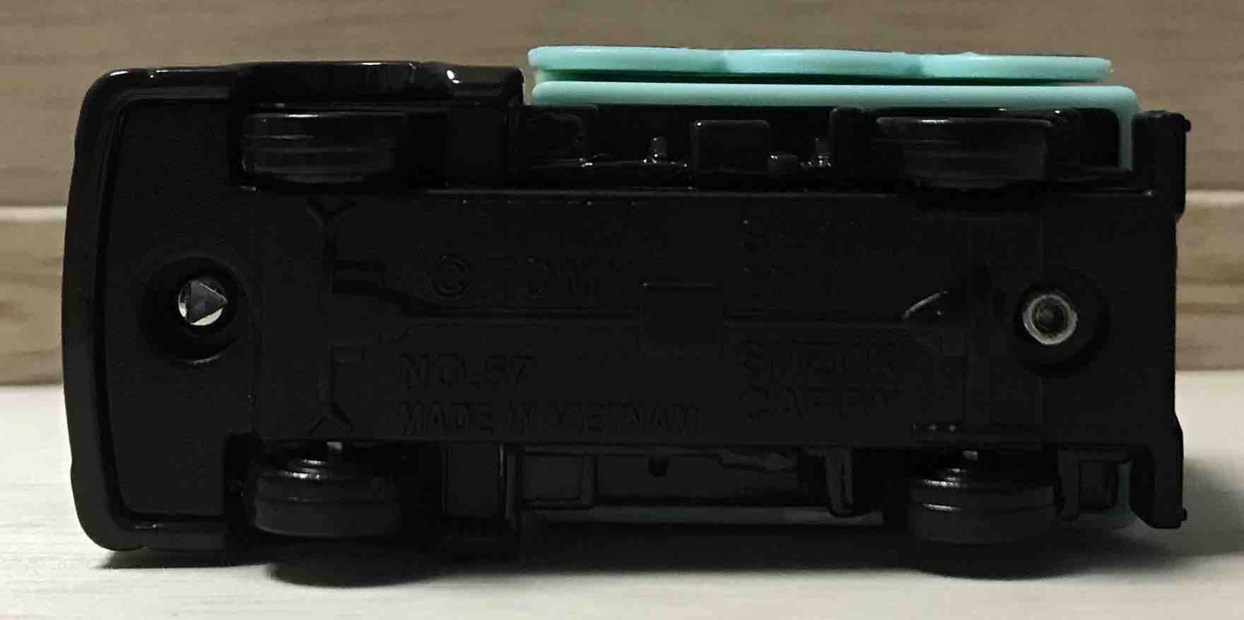 チョコミントのようなカラーリングを身に纏ったスズキキャリイ。お顔にスズキのエンブレムはありません。