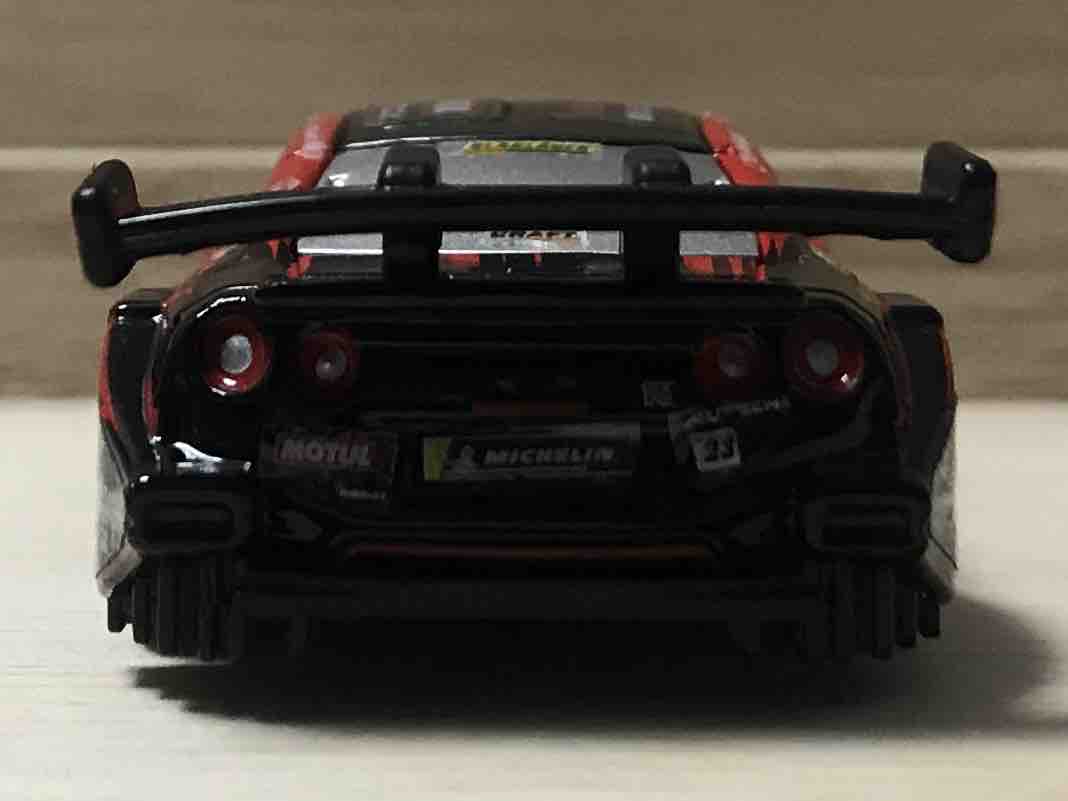 40分弱の最高傑作(?)、GT-R NISMOのMOTUL。1200円もするトミカに使いたくはない言葉です。印刷の技術はまだ発展途中なのでしょうか。ライトの塗り分け、グリル内の塗り分けは驚くほどのものなのに、悲しいですね…