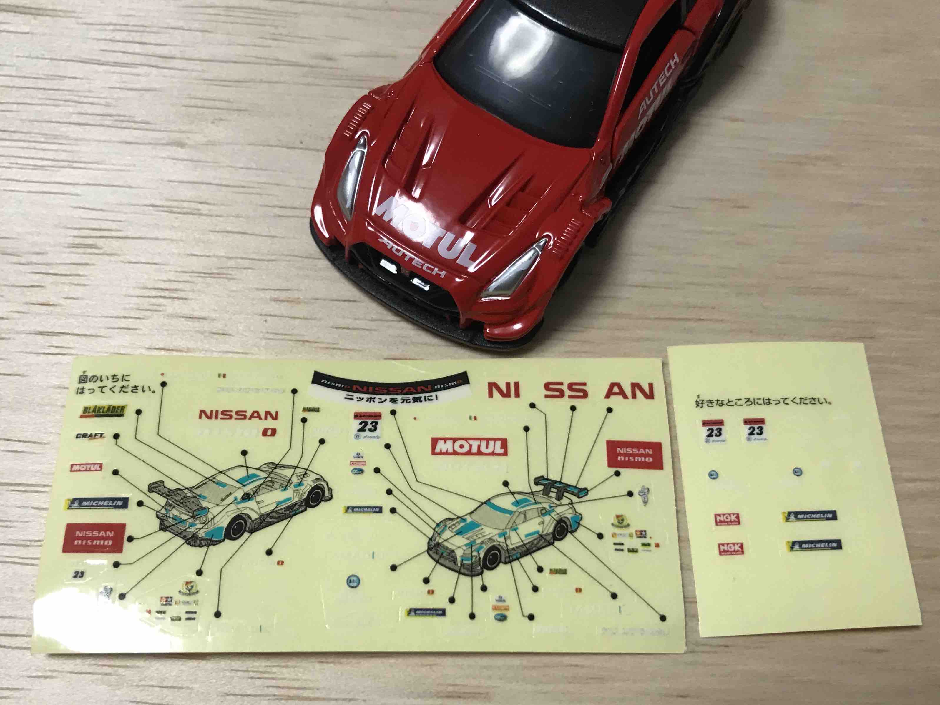 AUTECHとMOTUL以外のステッカーは全部シール。窓横のミシュランタイヤのキャラクターもシール。このシールが一番貼りにくかったです。サイドに本来ならゼッケンがあるのですが、それは最初に出てきた「お好み謎シール」を貼ってということなのでしょう。
