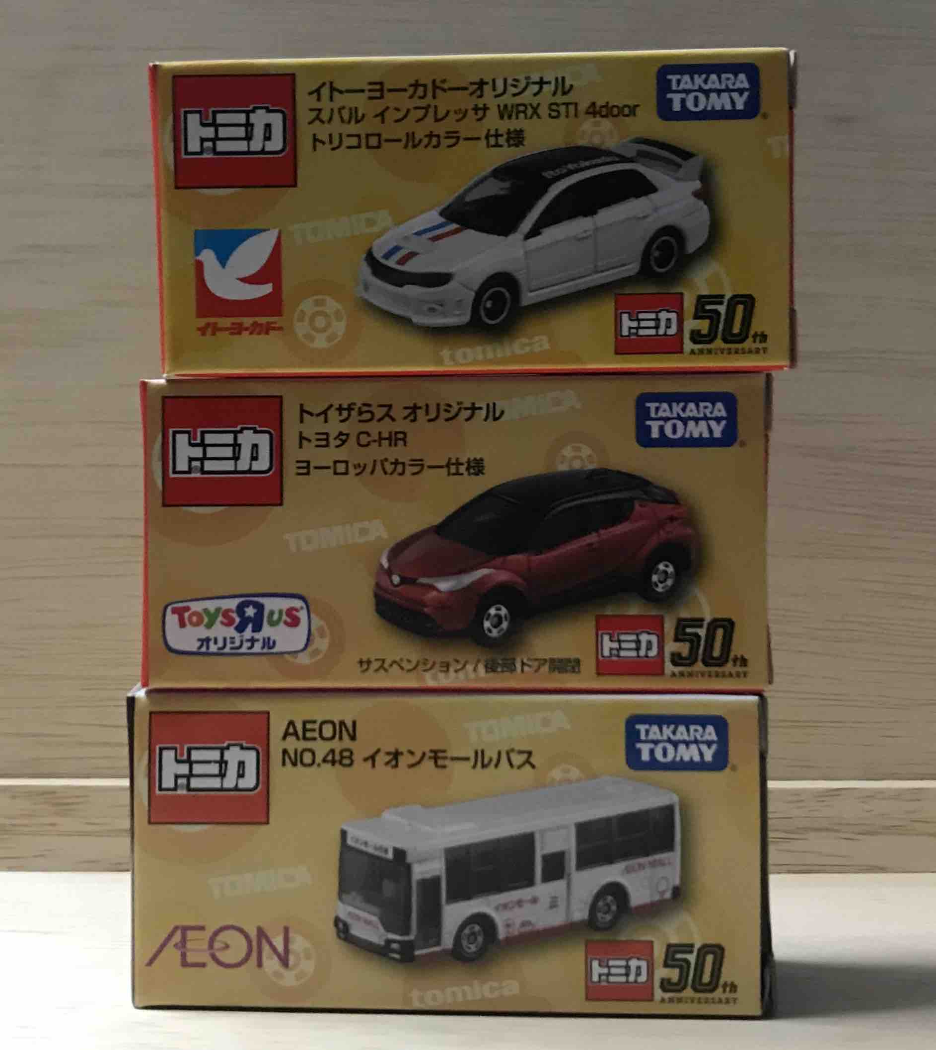 イオン・イトーヨーカドー・トイザらスの3社で同じデザインの50周年限定パッケージ。