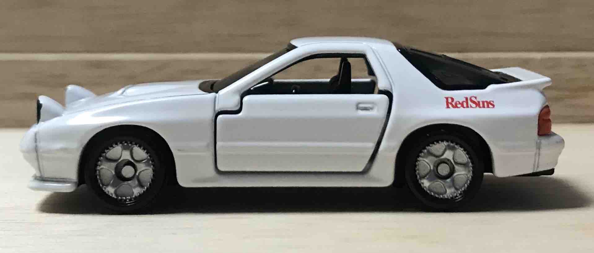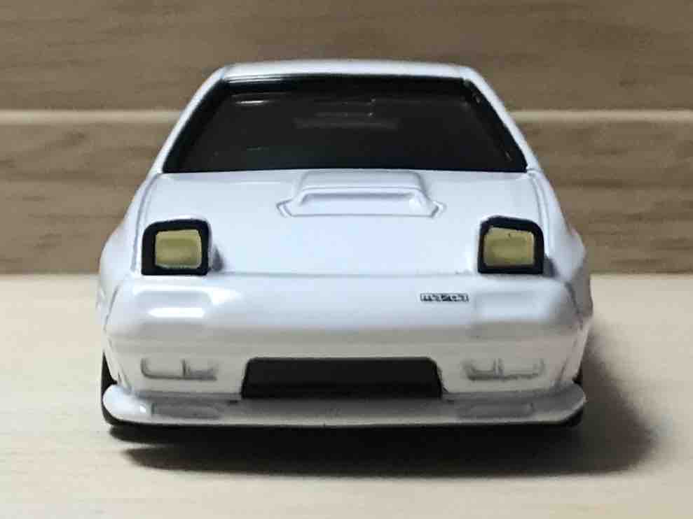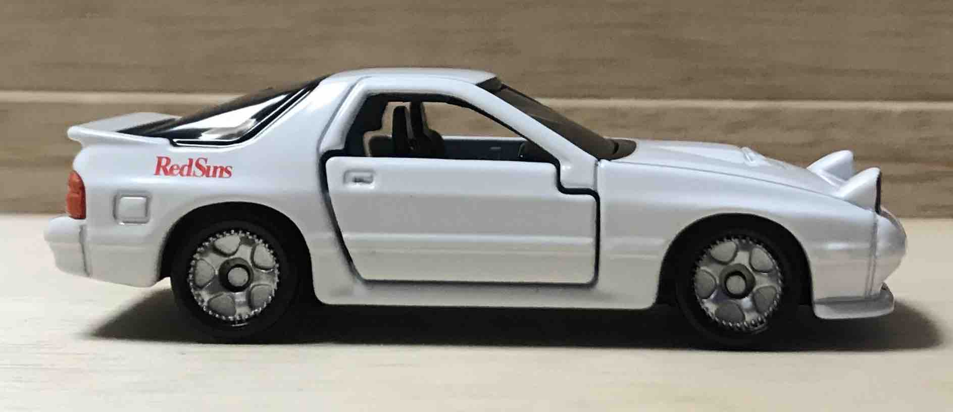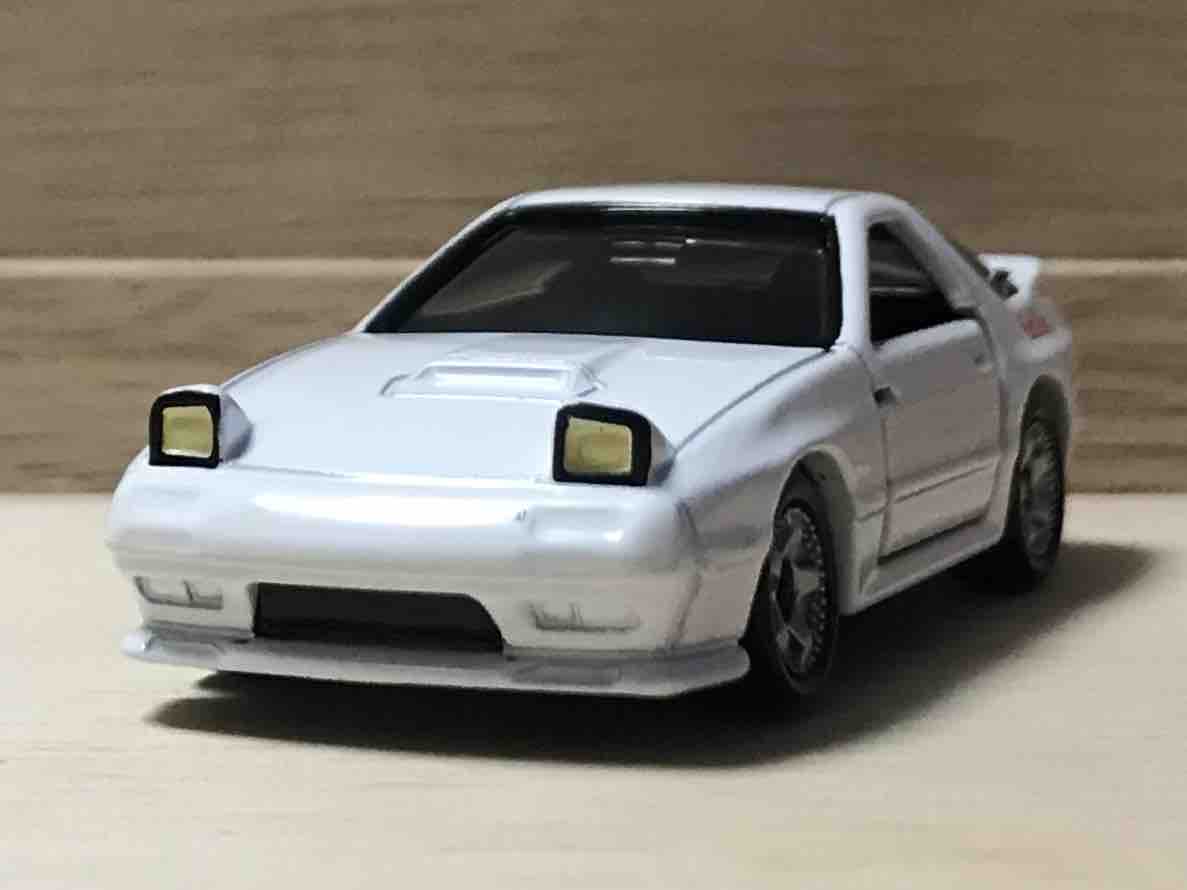 高橋涼介が操るマツダのロータリースポーツカー、FC3S RX-7。バンパーのmazdaエンブレムがこのトミカ最大の特徴。