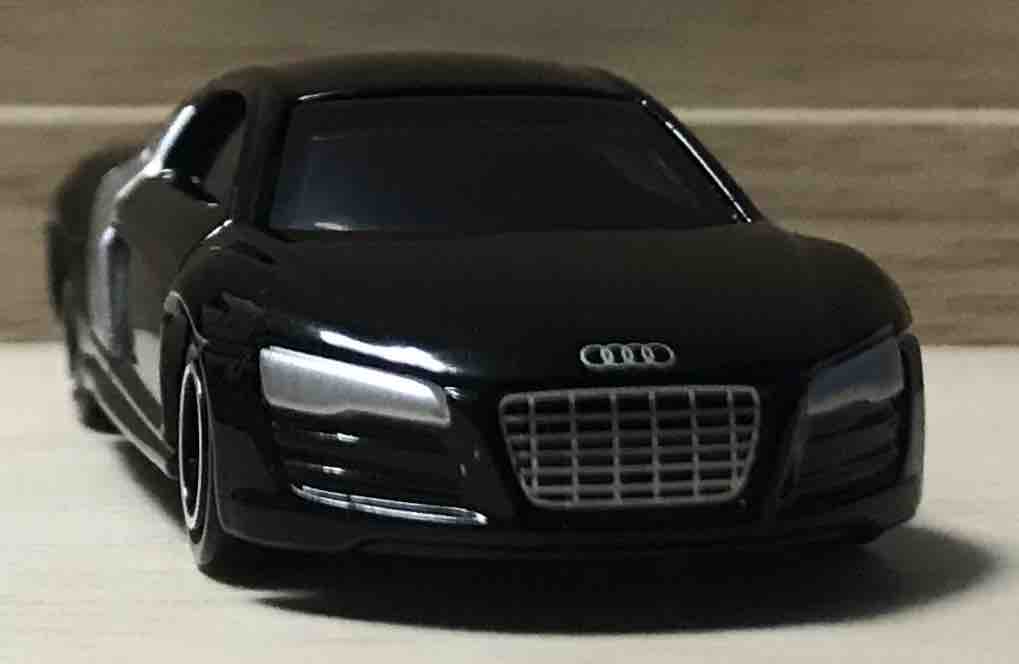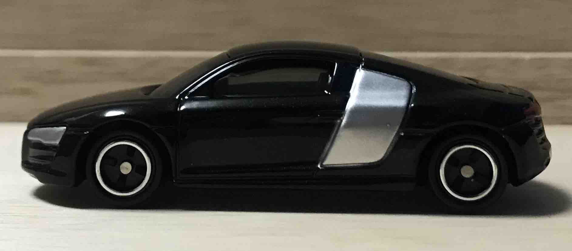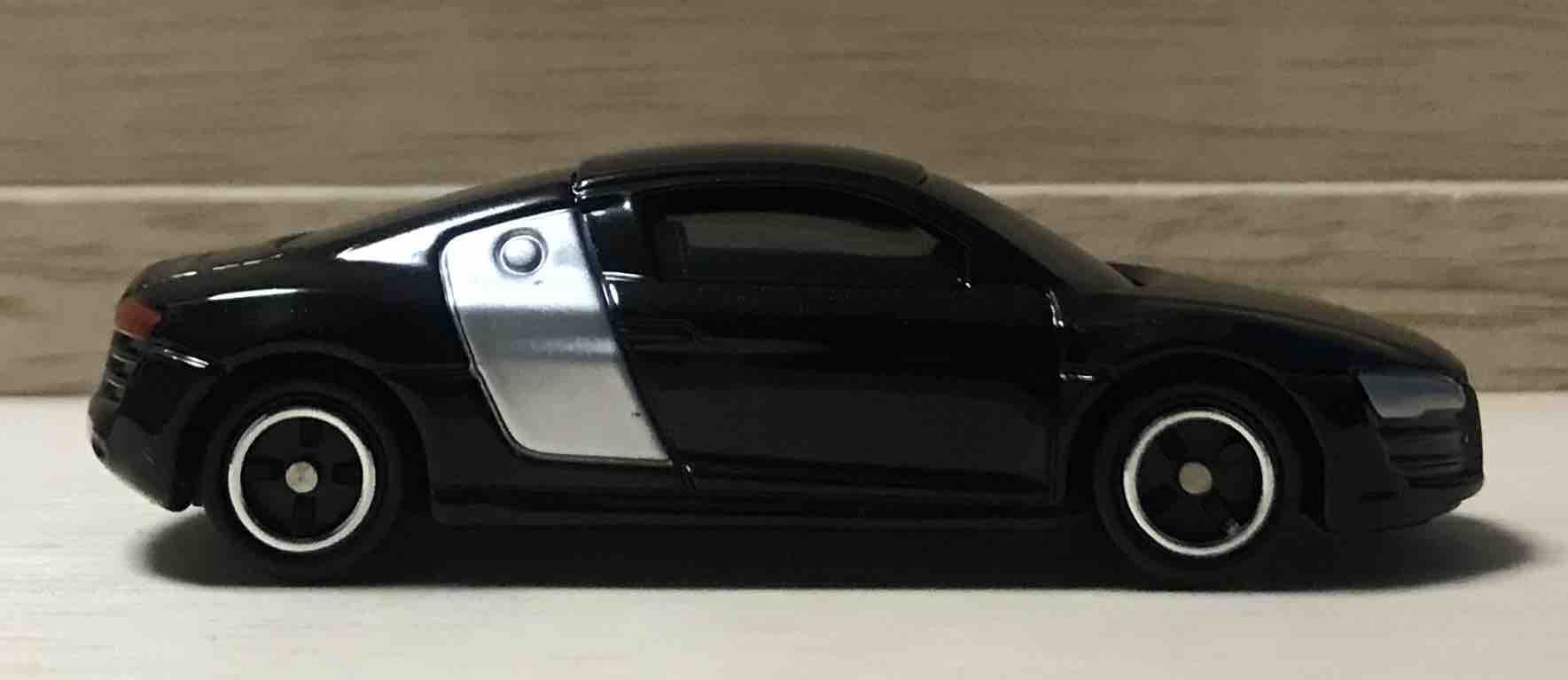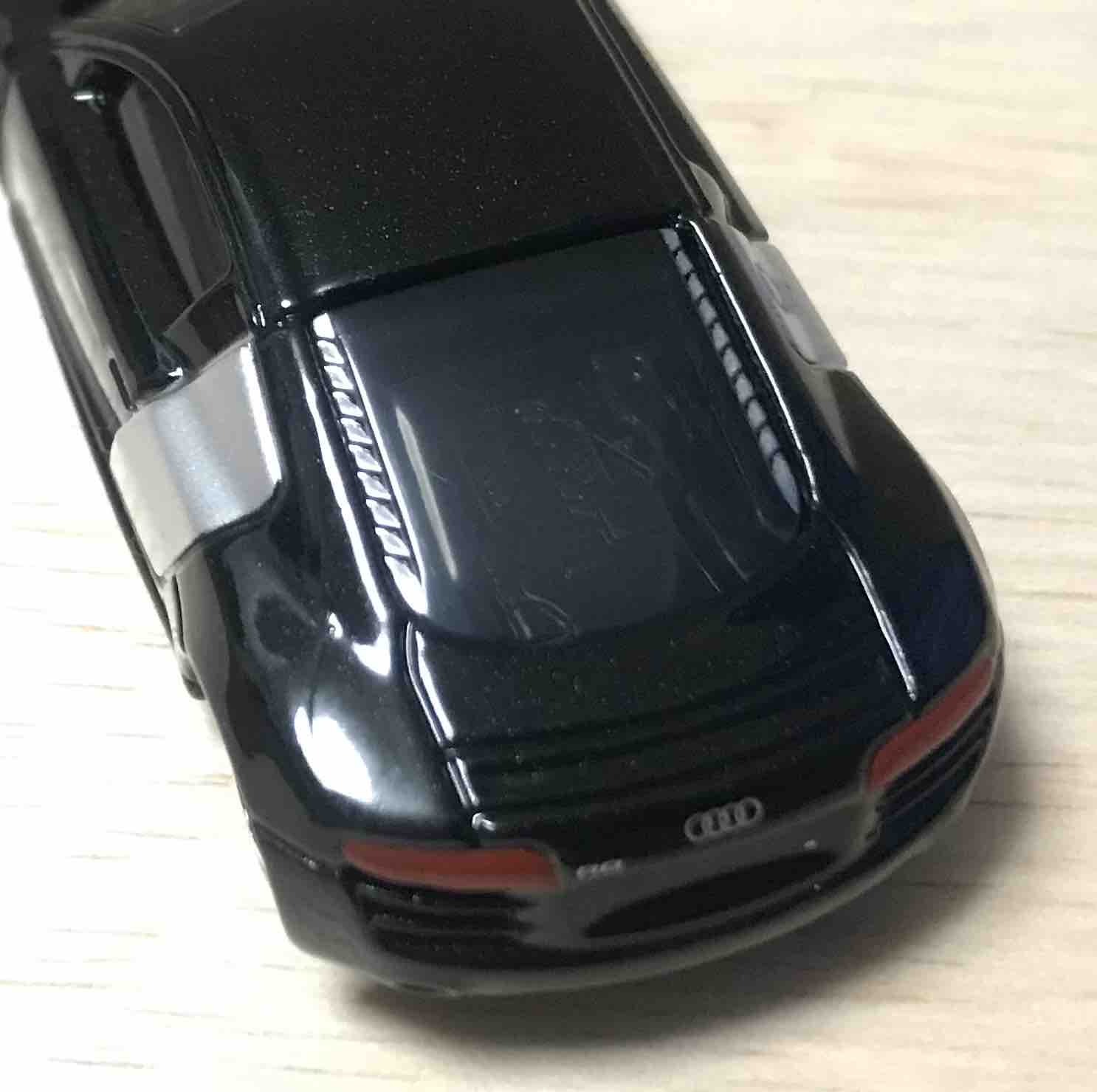 R8の特徴的なサイドのシールドのようなデザイン。トミカでも大きなインパクトがありますね。