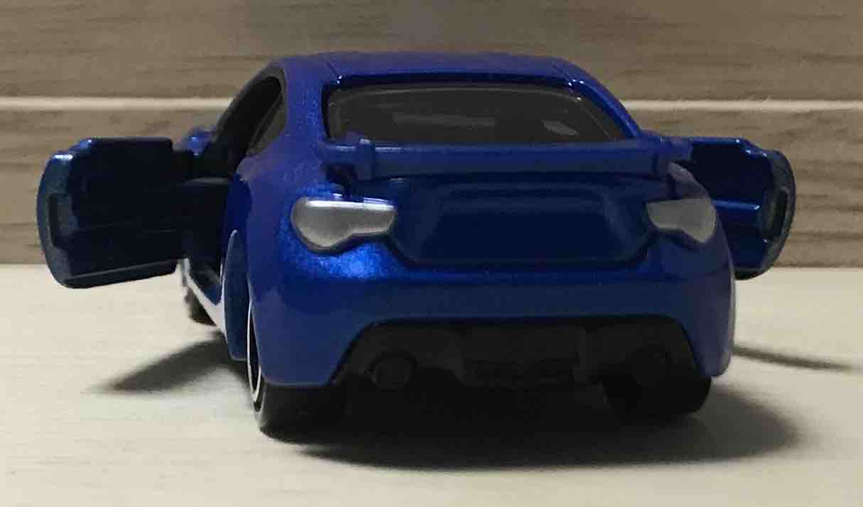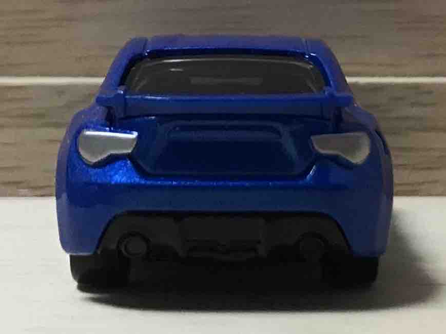 リア。これではWRブルーの86と言われても仕方がないでしょう。スバルのエンブレムはほしかったですね。「このブルーは86にはない!」という理論は確かにそうなのですが、メーカーの象徴であるマーク、識別、ブランドを意味するのがエンブレムなのですから… タカラトミーさん、もう一踏ん張りお願いします!