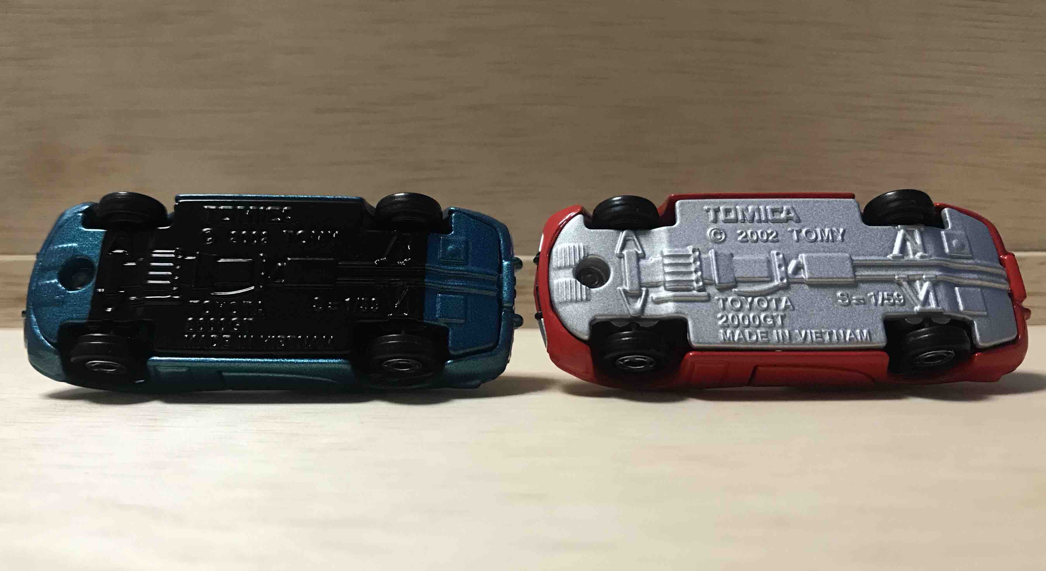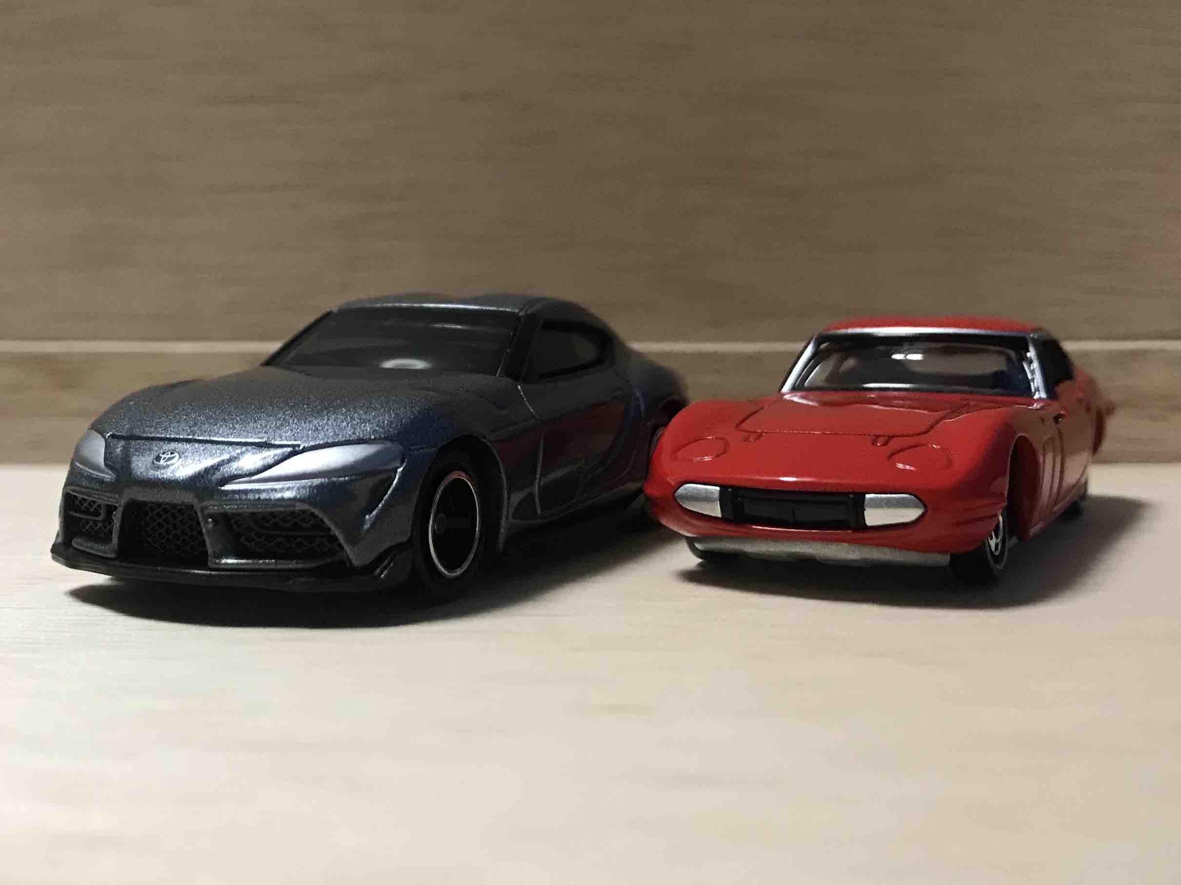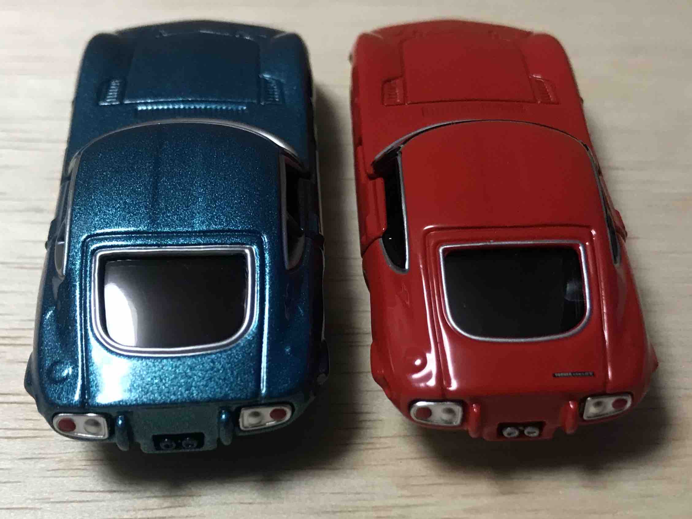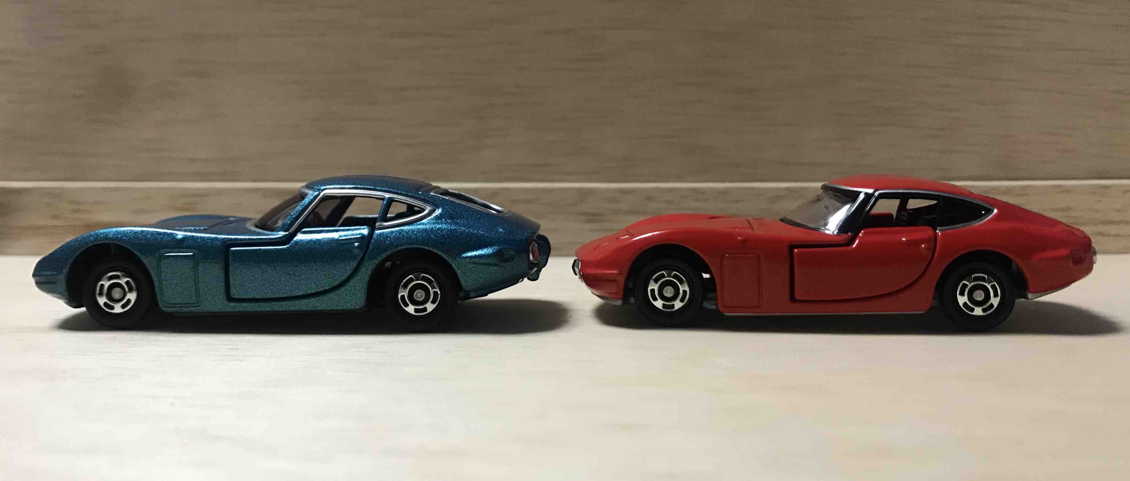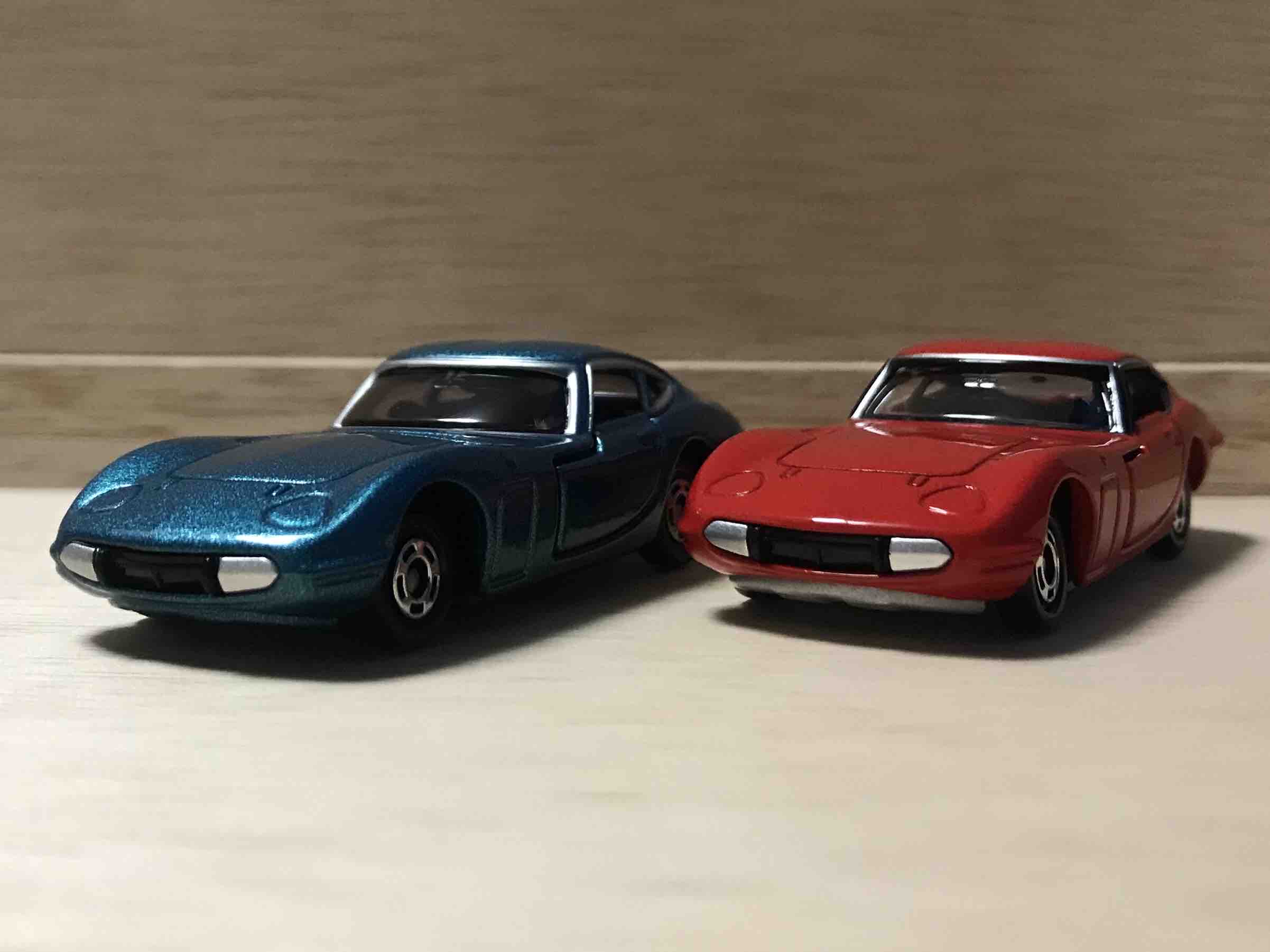 トミカ50周年記念コレクションの2000GT(左)と。