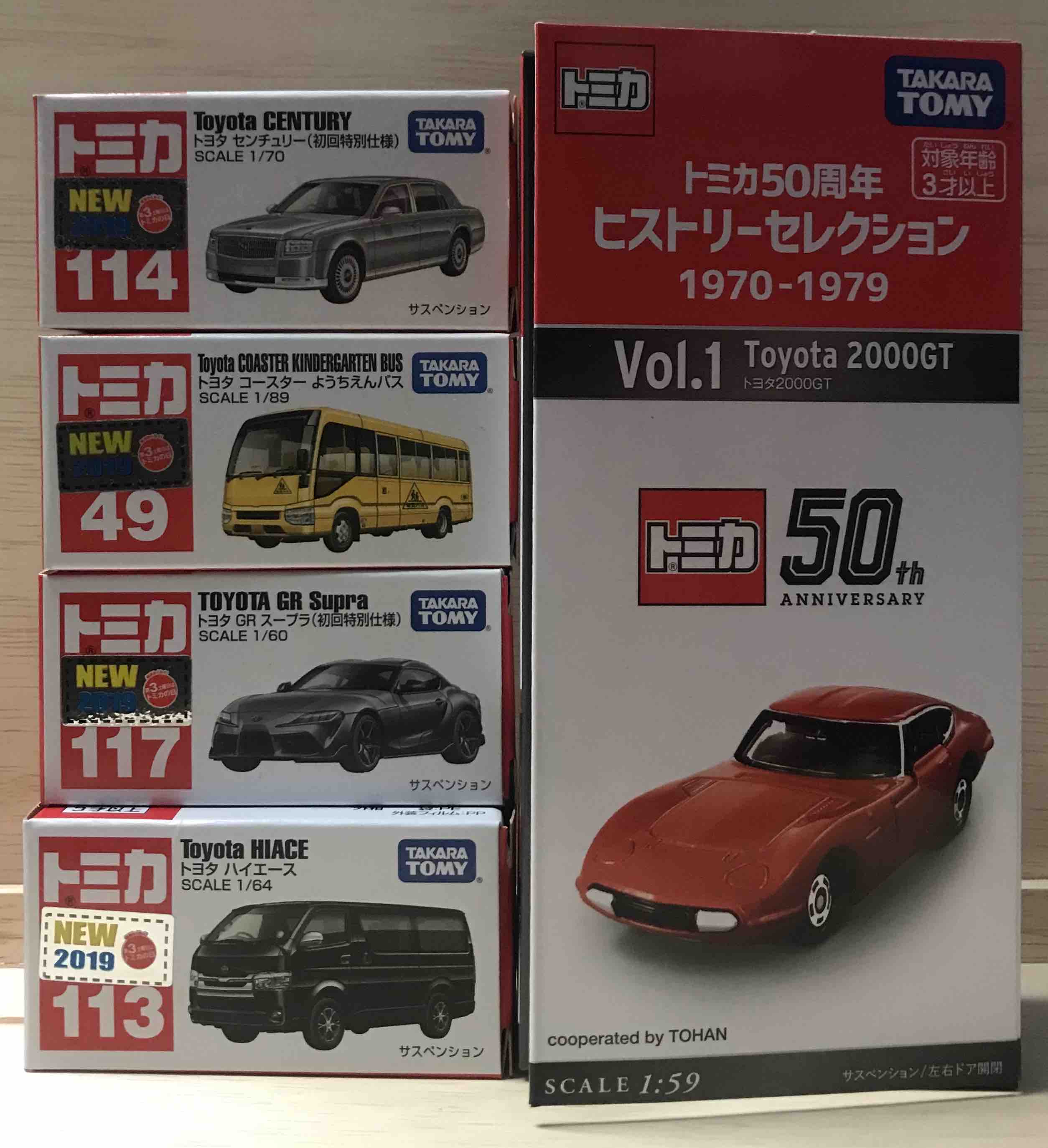 トミカ50周年記念コレクションは2019年12月末に発売された50周年ものの最初のシリーズで、全国のおもちゃ屋さんなどで発売中。