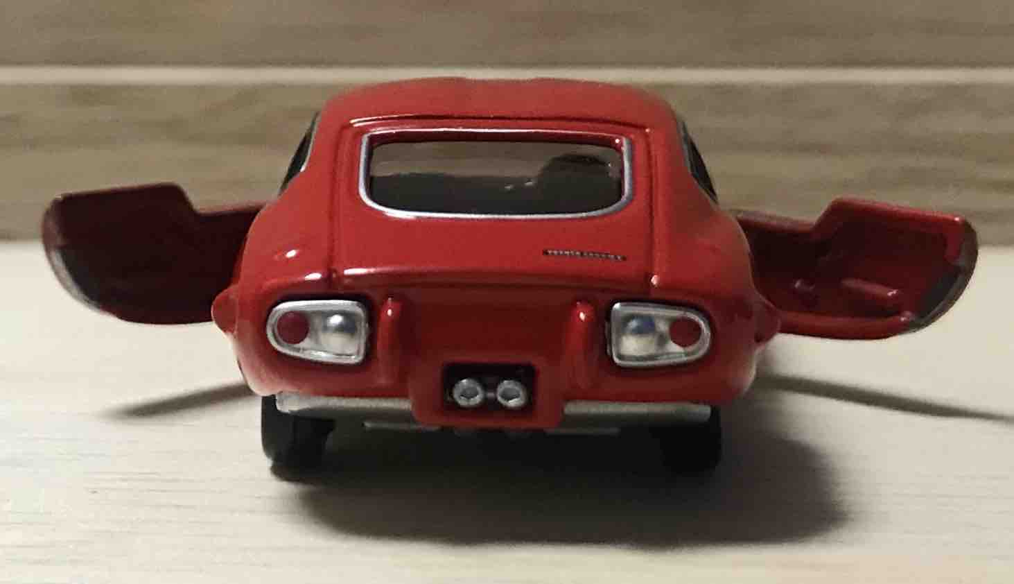 テールランプと塗装されています。マフラーはシルバー。右ライト上には2000GTのエンブレムの再現もあります。