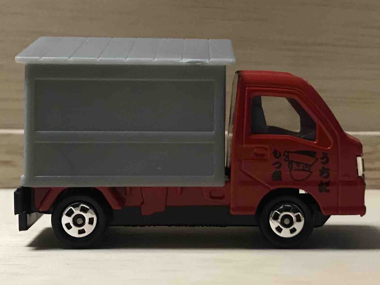 ものすごく渋いトミカ「もつ煮屋台トラック」。ベースがスバルサンバーなのもなかなかのチョイス。