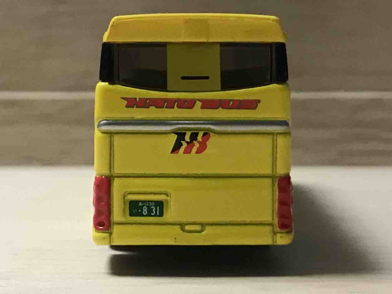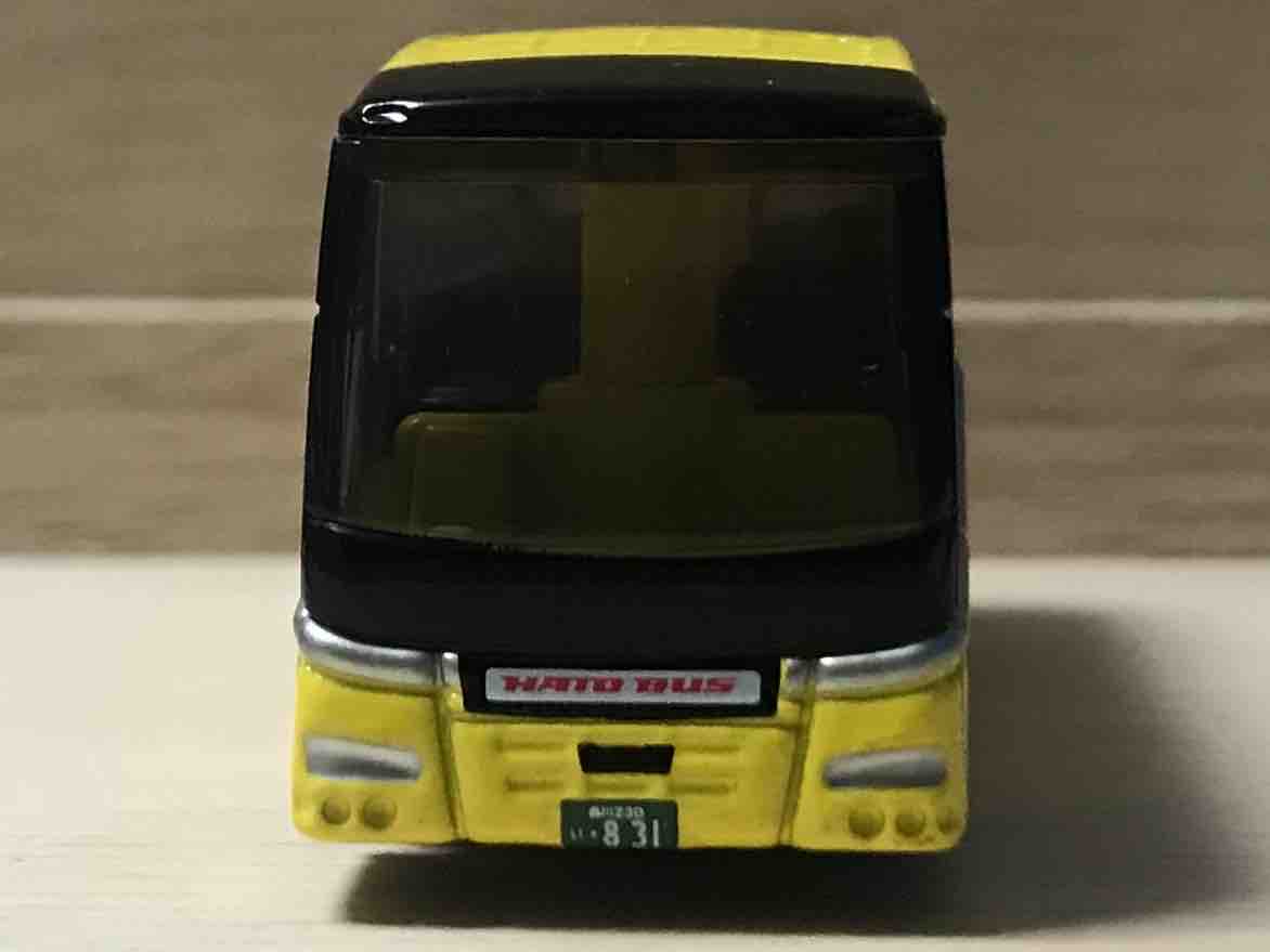 方向幕ははとバスのロゴ。70周年特注トミカもガーラでしたが、そのときはフロントにナンバープレートの印刷がありませんでした。