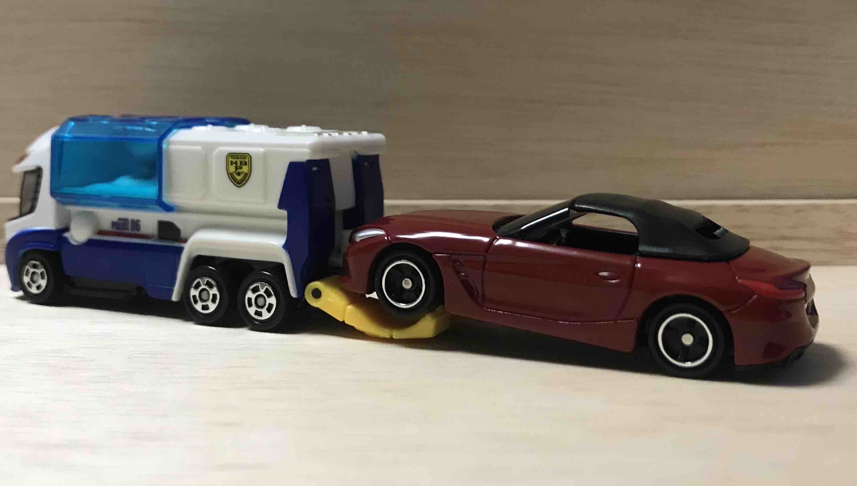 あぁ… BMW Z4がお世話に…引っかかりは少し悪いですが、こうやって牽引することができます。通信もできて、レッカーもできて、万能な警察車両です。