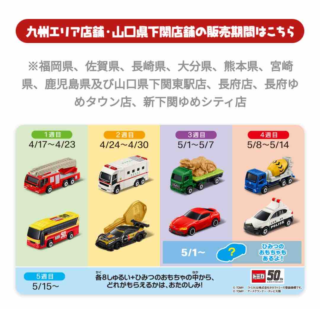 九州エリアと山口県下関エリアではスケジュールが異なるので注意が必要です。