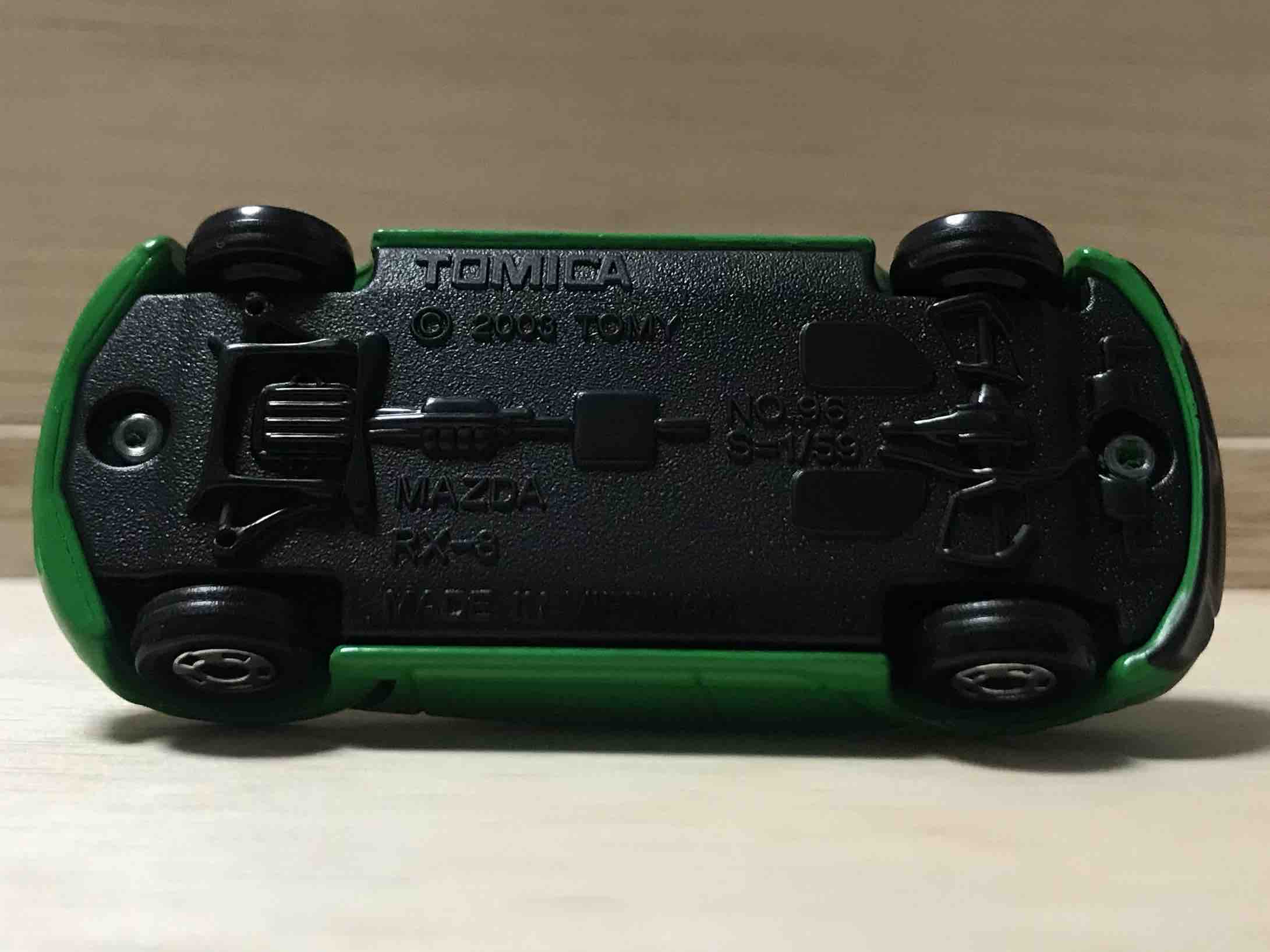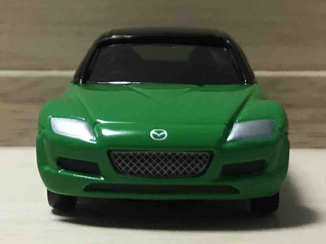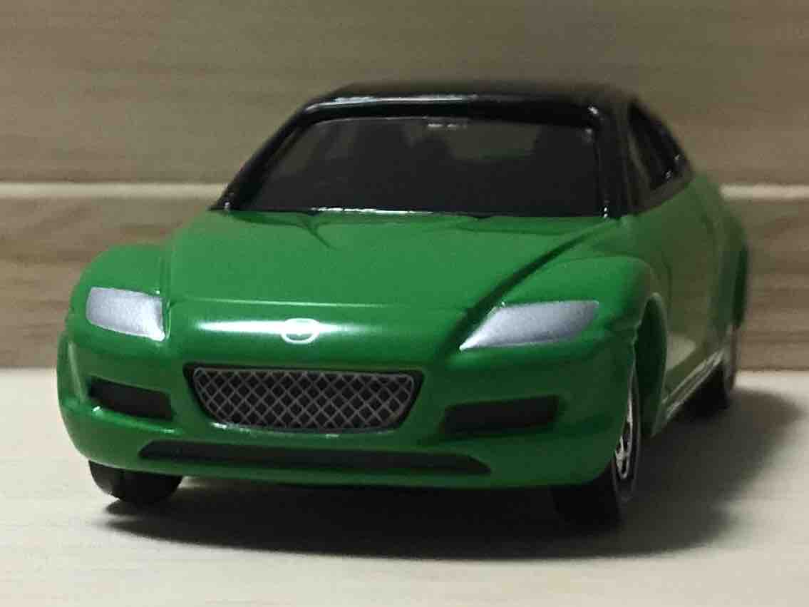 緑×黒のカラーですが、実車には設定がなく…そう、元ネタのない1台なんです。厳密に言うと、このカラーリングは先代ロードスターに設定されていたもので、RX-8にはないのです。だったらロードスターでやればいいのにと思います。