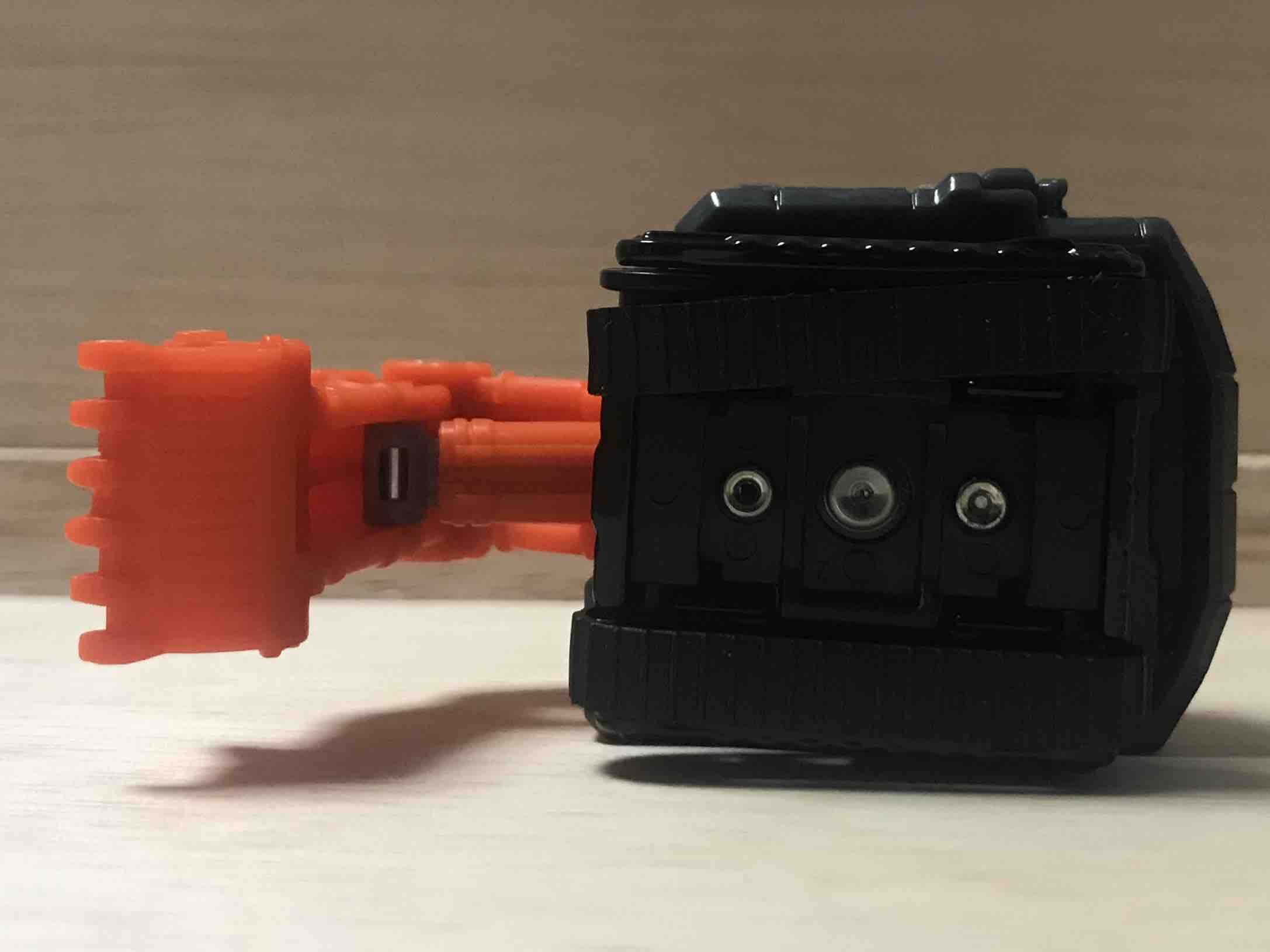 シャーシ。名称などが刻まれているのは本体の下なので、クローラの上。少し見えにくいですね。