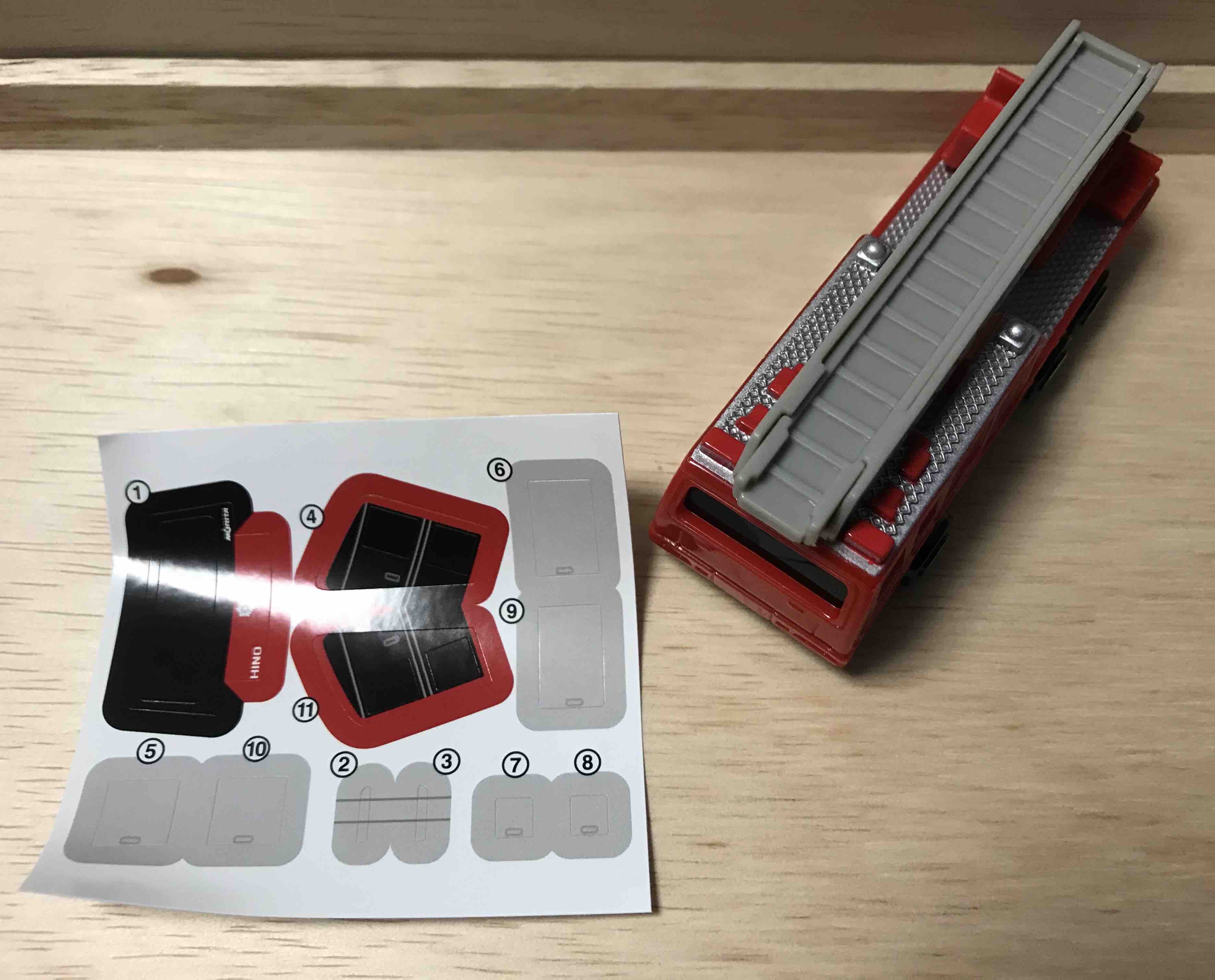 シールの量も少なく、まだ貼りやすい、心も楽な1台。というか、スーパーアンビュランスが酷すぎるのです。それを貼り終えた私からすれば、こんなもんちょろいなです。