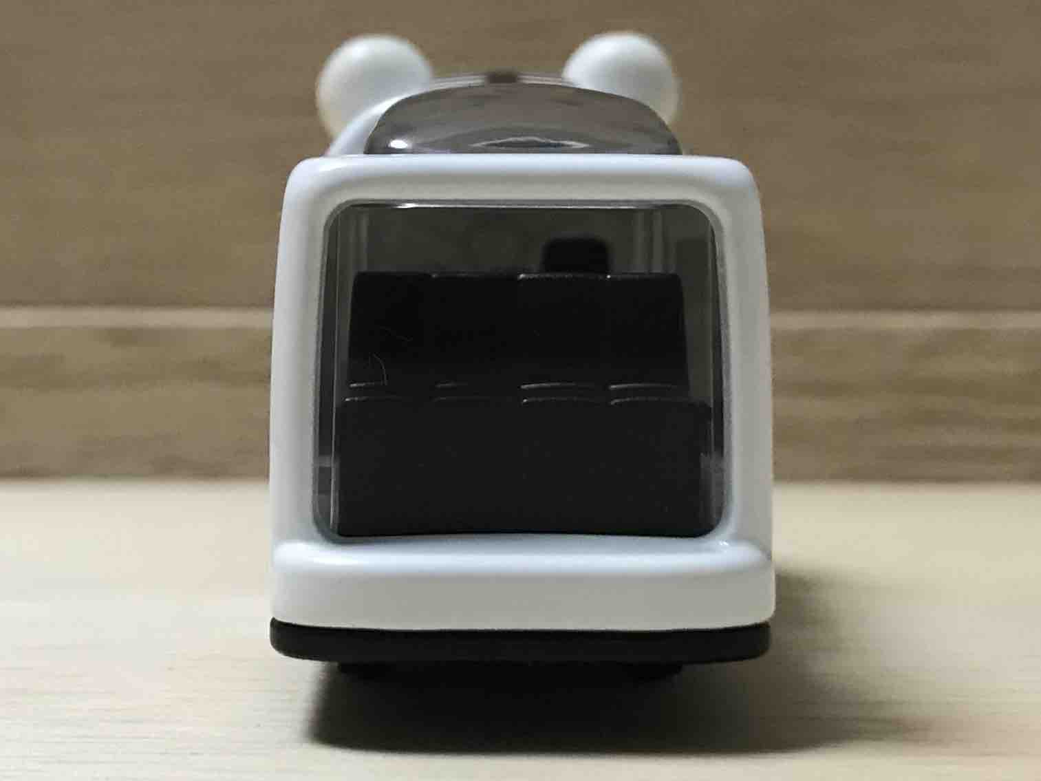 かわい…いとは少し言い難いお顔をしています。カッコいいにも当てはまらないような、不思議なお顔です。かわいいポイントは鼻がピンクなところくらいでしょうか。というより、フロントウィンドウをお顔にしてしまっているため、運転士さんも困惑でしょうね。